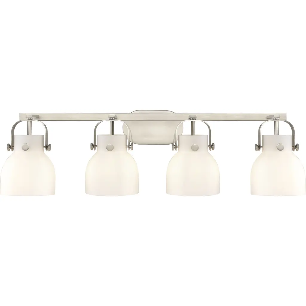 Pilaster Ii Bell 4 Light 36.5 Inch Satin Nickel Bath Vanity Light Wall Light In Seedy Glass