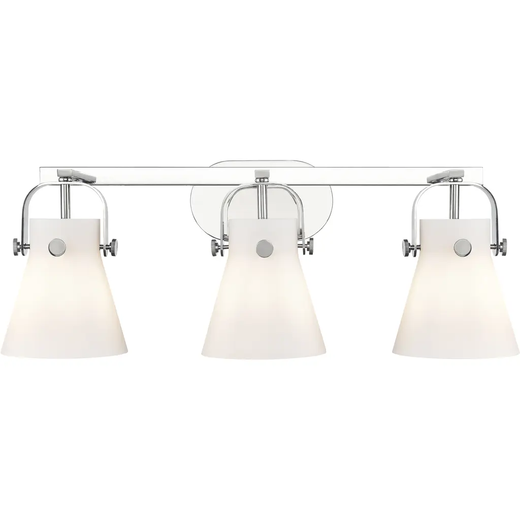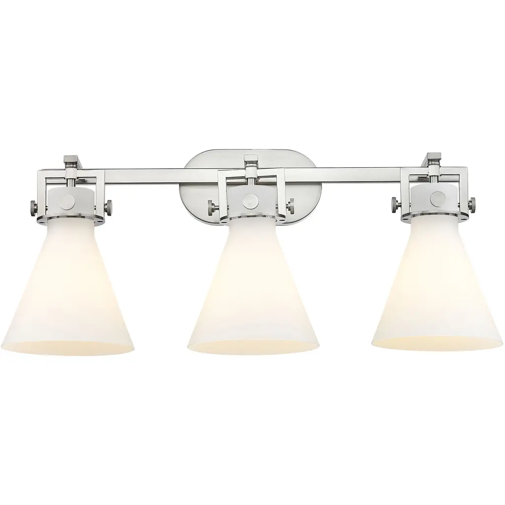 Pilaster Ii Cone 3 Light 26.5 Inch Satin Nickel Bath Vanity Light Wall Light In Matte White Glass