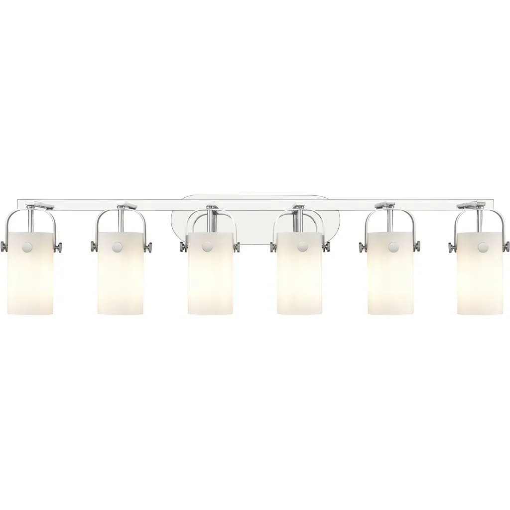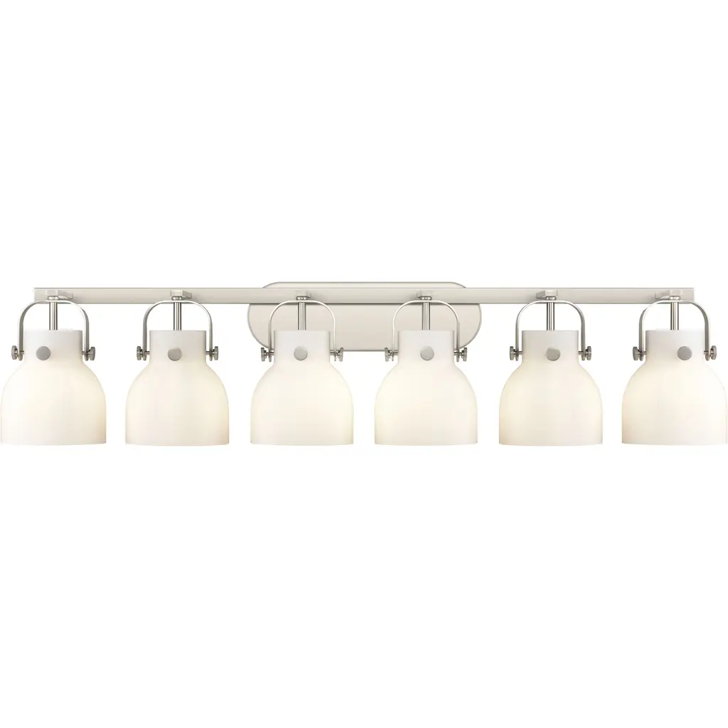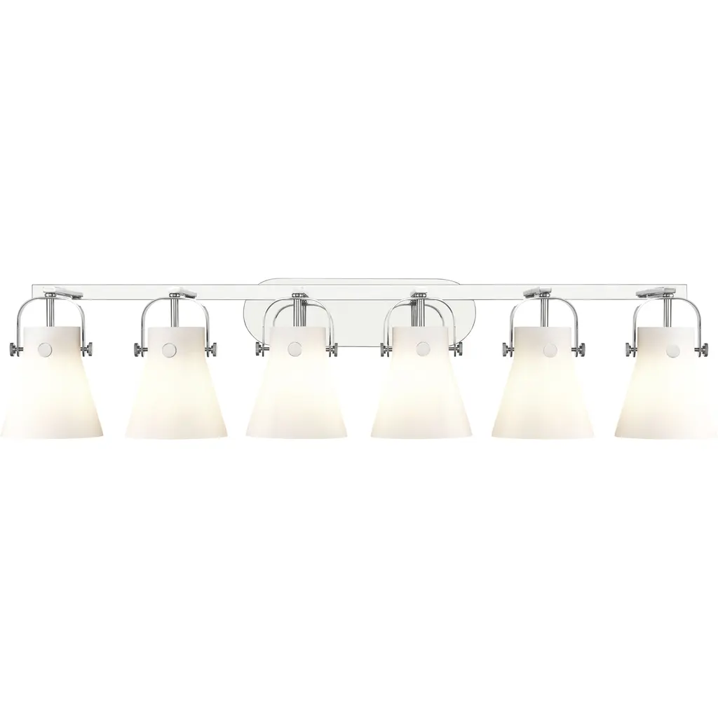 Pilaster Ii Cone 6 Light 45.5 Inch Satin Nickel Bath Vanity Light Wall Light In Matte White Glass