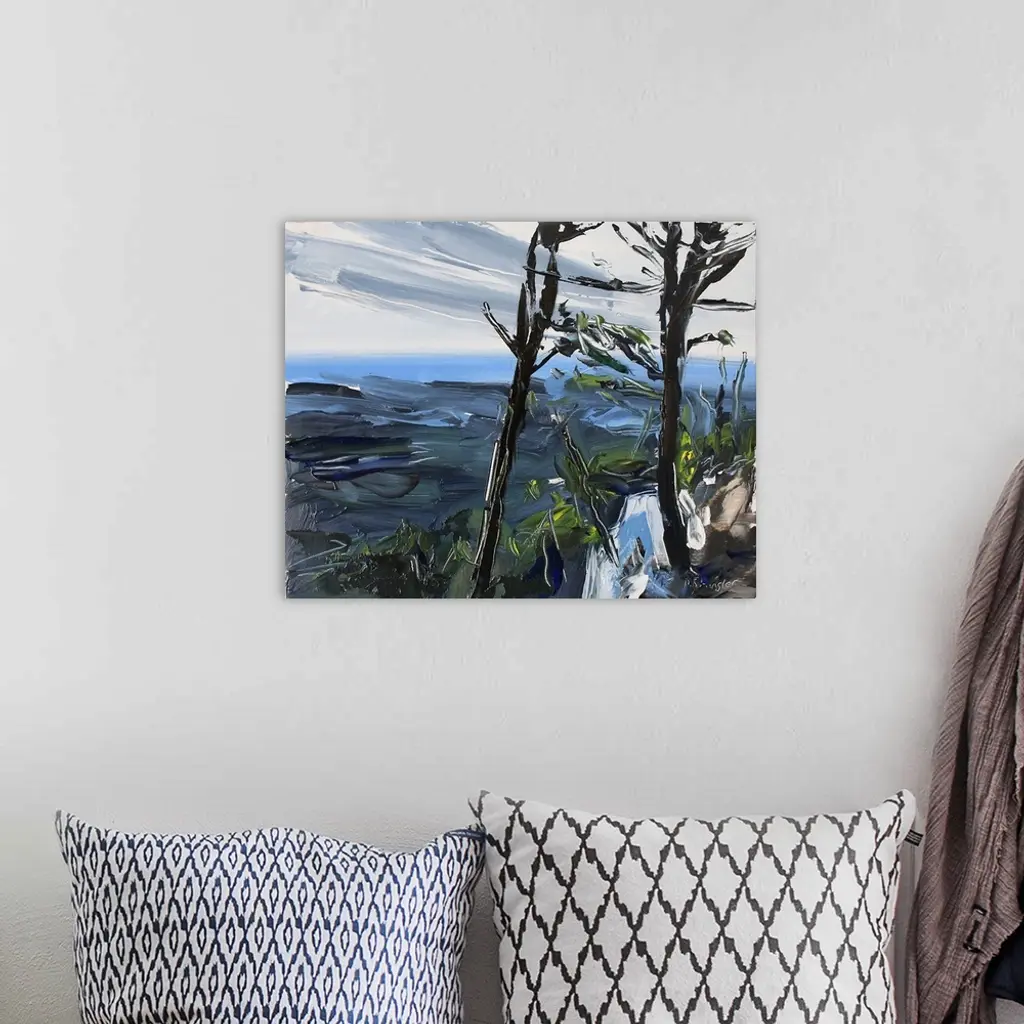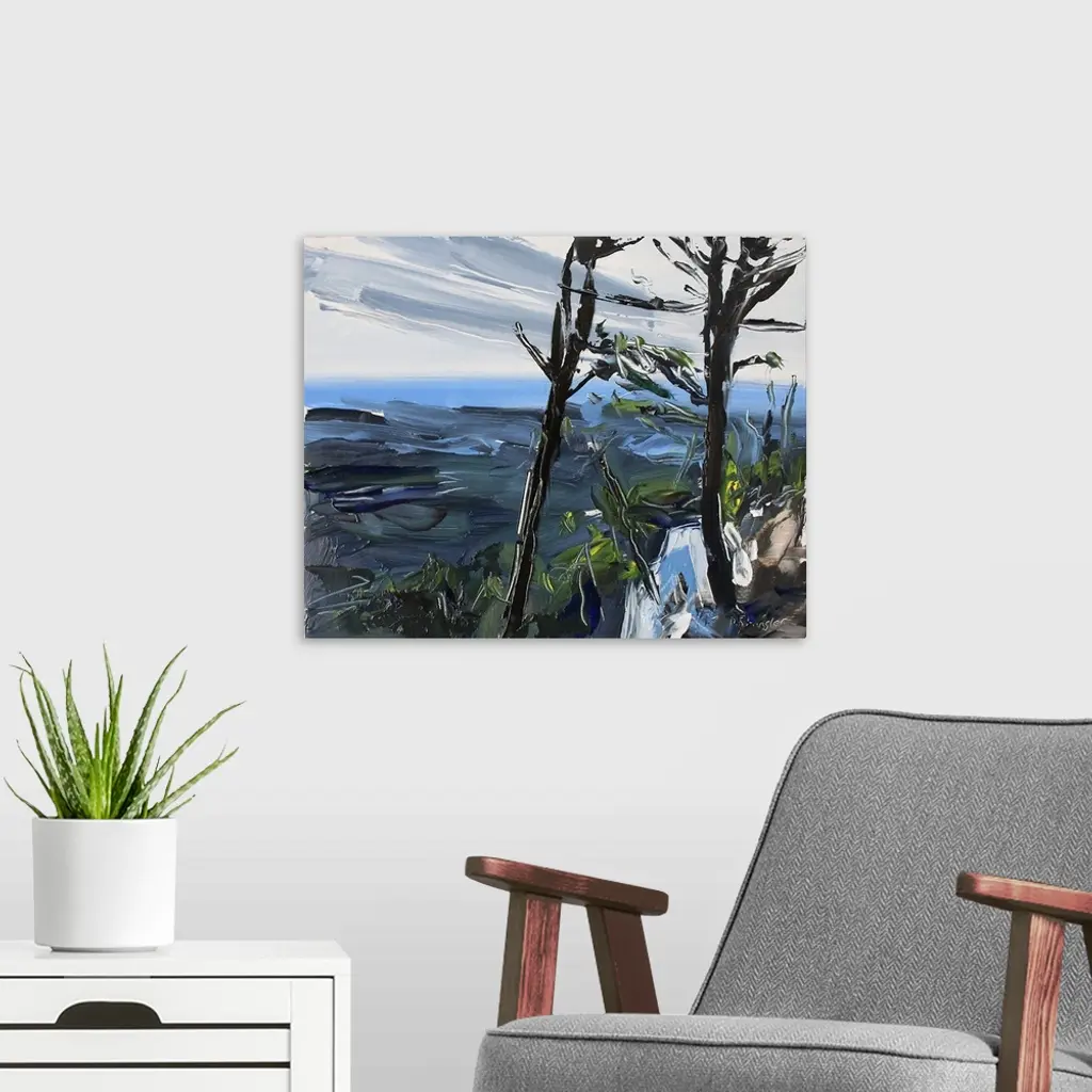 Contemporary palette knife painting of the scenic view from Pilot Mountain, NC.
