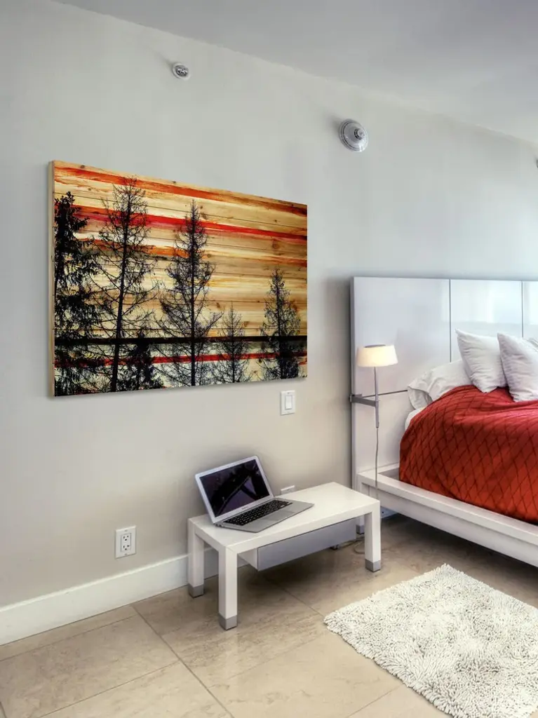 Striking and unique, the "Pine Forest Trees" Print on Natural Pine Wood by Parvez Taj will bring your walls to life. Printed on natural pine wood, this 45 inch wide by 30 inch tall contemporary artwork will make a statement in any living room, dining room, or bedroom.- Fine art print on natural pine by Parvez Taj- wood pieces are hand-selected by Fine craftsmen for printing- Arrives ready to hang- Includes a certificate of authenticity- Artist signature on the front