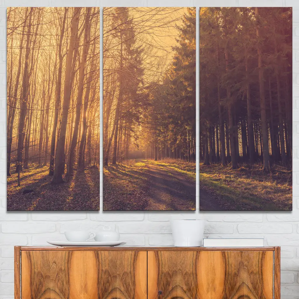 "Pine Tree Forest By Road" Photo Canvas Art Print, 3 Panels, 36"x28"
