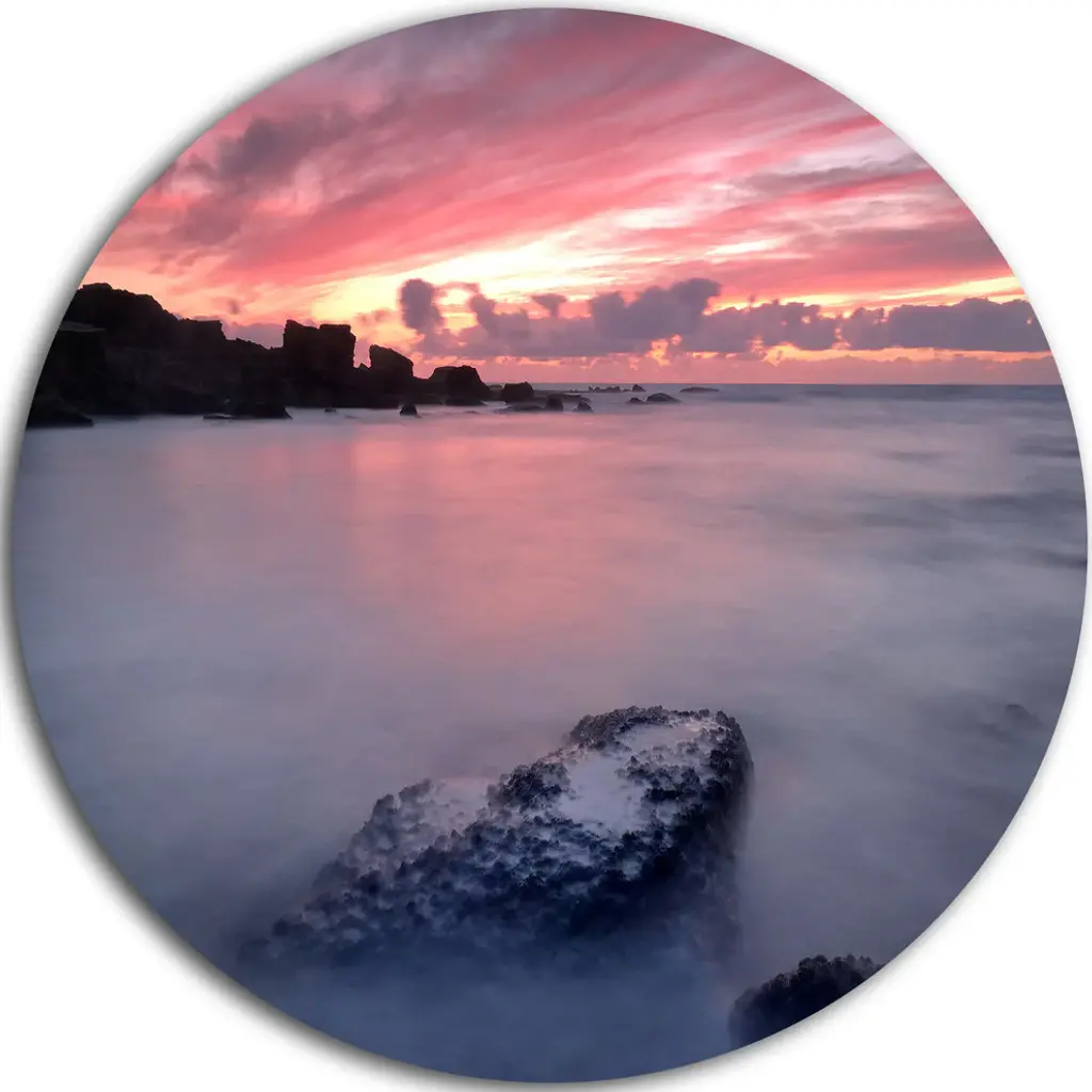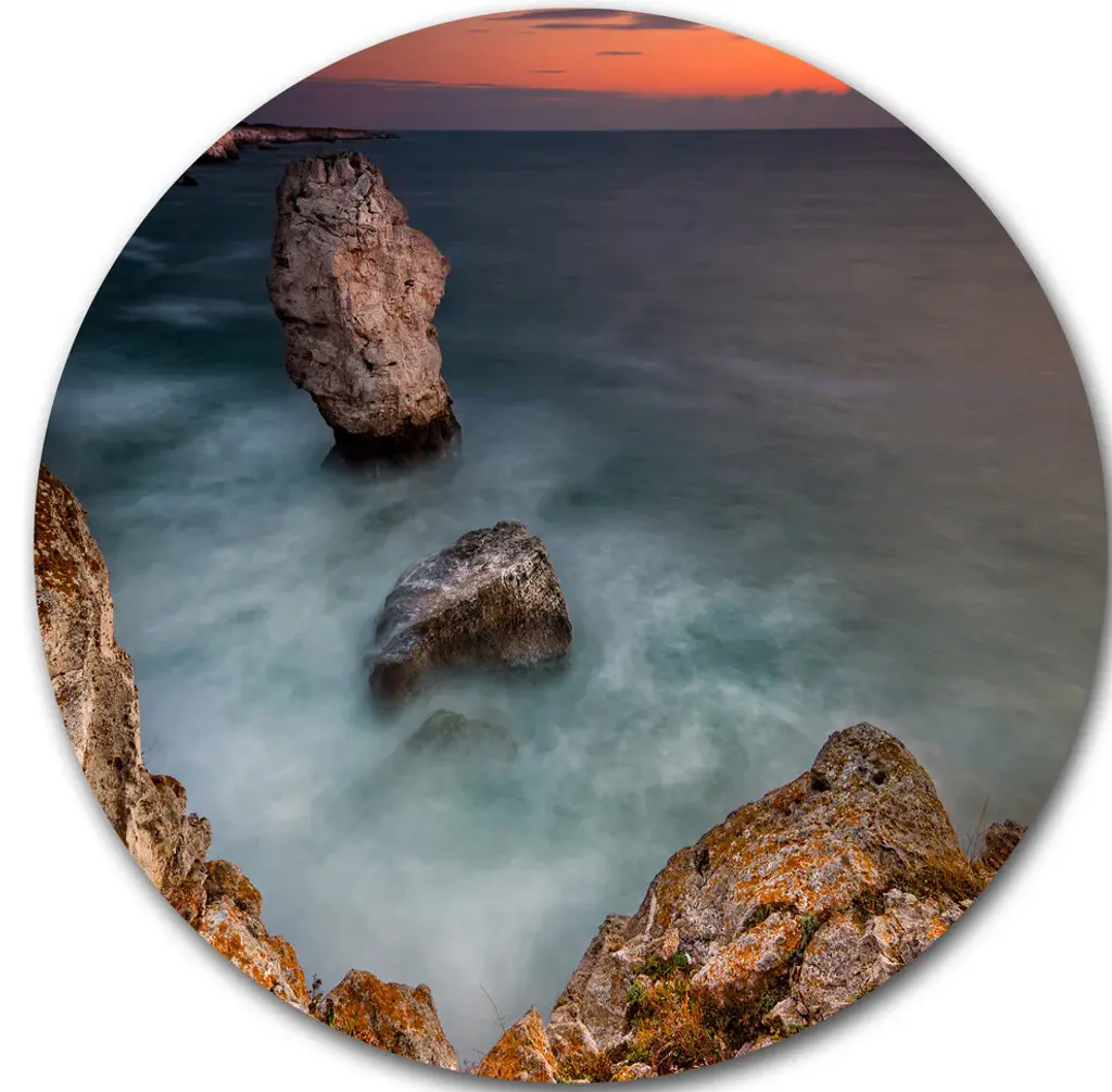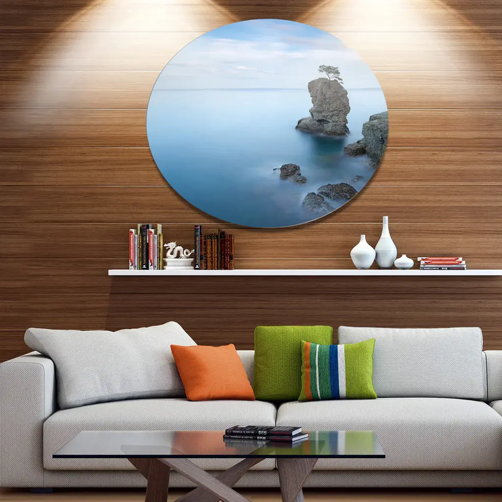 Bring Contemporary Abstraction to your home with this large Circle Metal wall art. This Pine Tree Rock At Portofino Park Metal Artwork makes it the focal point of any room or office. - White Gloss Coating ensures colors are extra vibrant with light reflection.- Aluminum grade Sheet Metal with 1 inch mounting frame on the back giving the illusion that the artwork is floating on the wall..- Mounting Brackets are included along with instructions.- High Quality Digital images are created directly into a glossy aluminum panel producing a stunning and captivating print into the glossy finish of the metal.- Water, Fire and Scratch resistant HD Aluminum panels.- Looks better than any photo paper and guaranteed to last at least 20 years- Easy to clean with a microfiber cloth. Colors are far superior to regular Canvas Art. - Easy to Hang