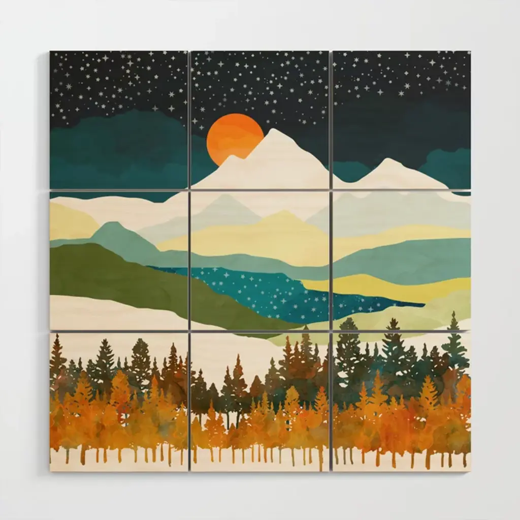 Make your own mosaic. With our wood wall art's multi-square design, you have the power to adjust the spacing between each section to form exactly the right look. Play around with the designs by removing a panel in strategic locations or arrange them around another piece to fill out the look. Available in three sizes.