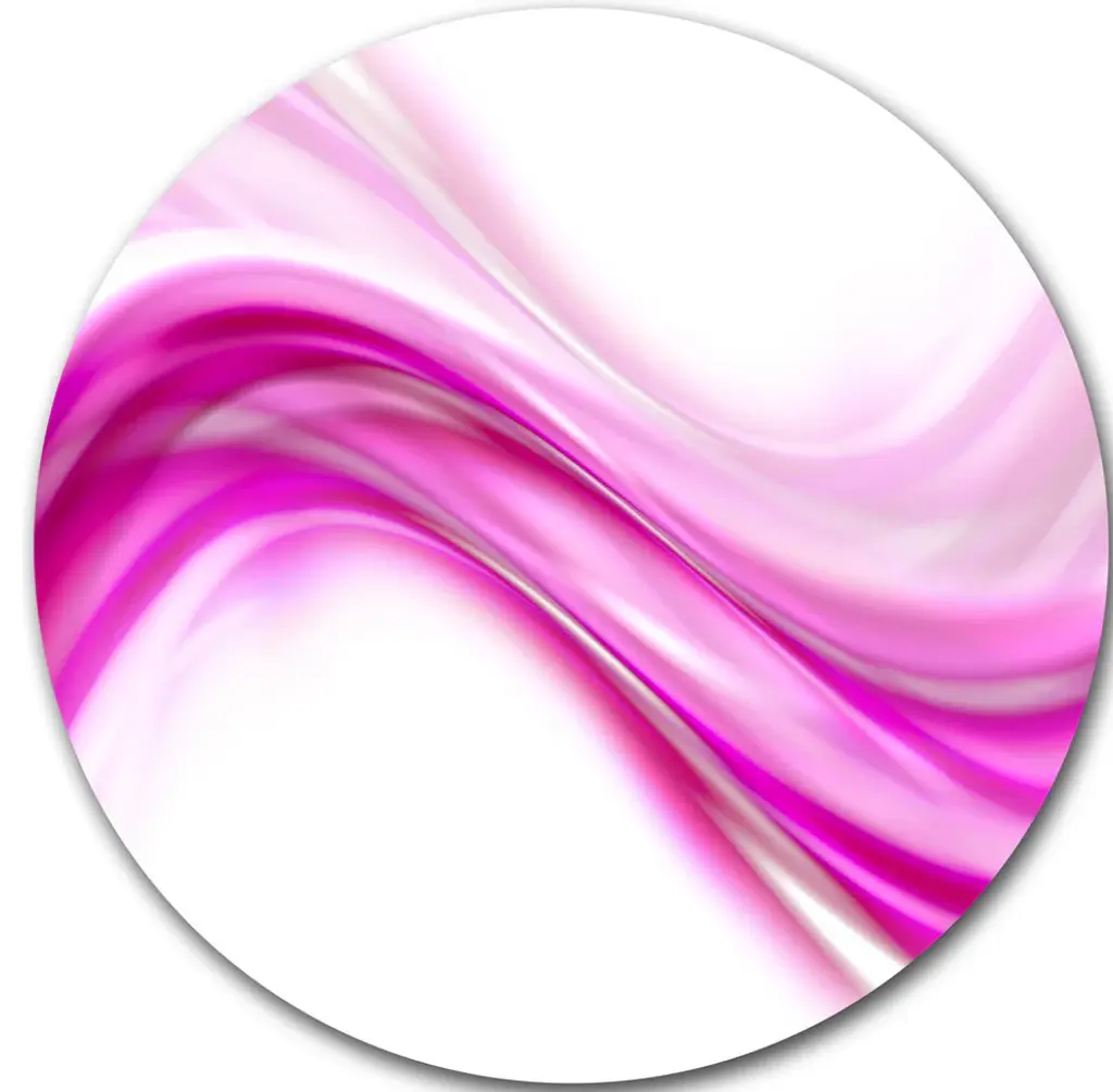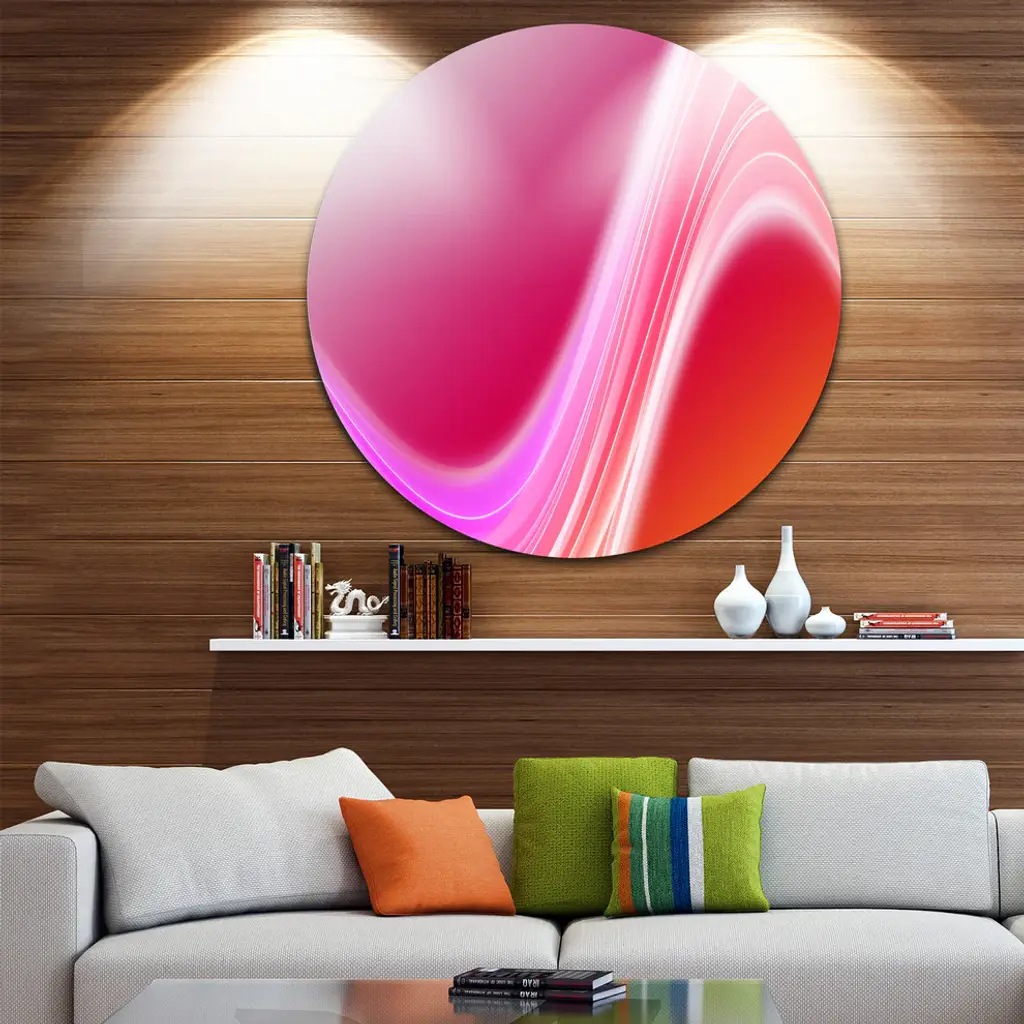 Bring Contemporary Abstraction to your home with this large Circle Metal wall art. This Pink Abstract Curved Lines Metal Artwork makes it the focal point of any room or office. - White Gloss Coating ensures colors are extra vibrant with light reflection.- Aluminum grade Sheet Metal with 1 inch mounting frame on the back giving the illusion that the artwork is floating on the wall..- Mounting Brackets are included along with instructions.- High Quality Digital images are created directly into a glossy aluminum panel producing a stunning and captivating print into the glossy finish of the metal.- Water, Fire and Scratch resistant HD Aluminum panels.- Looks better than any photo paper and guaranteed to last at least 20 years- Easy to clean with a microfiber cloth. Colors are far superior to regular Canvas Art. - Easy to Hang