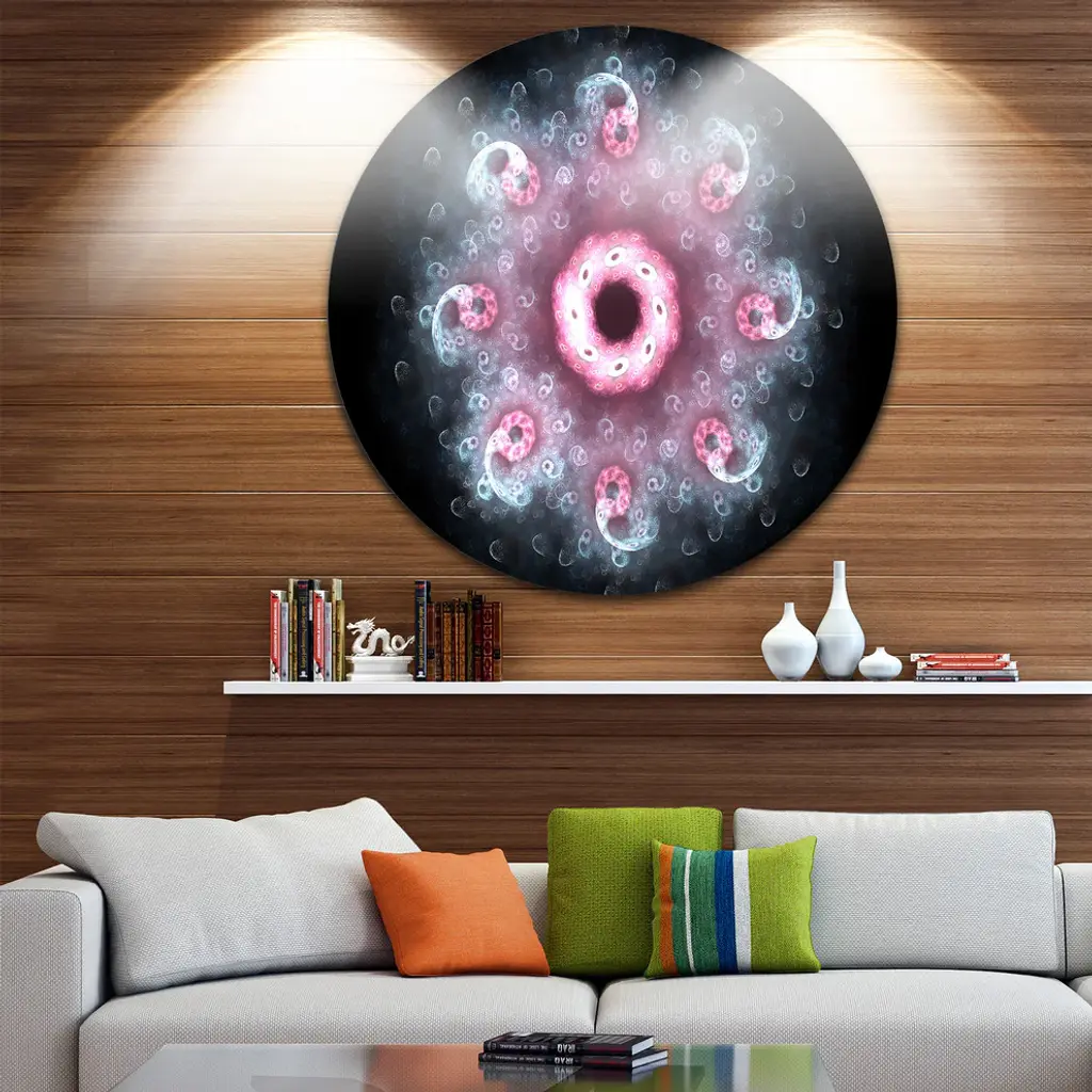 Bring Contemporary Abstraction to your home with this large Circle Metal wall art. This Pink Abstract Fractal Mandala Flower Metal Artwork makes it the focal point of any room or office. - White Gloss Coating ensures colors are extra vibrant with light reflection.- Aluminum grade Sheet Metal with 1 inch mounting frame on the back giving the illusion that the artwork is floating on the wall..- Mounting Brackets are included along with instructions.- High Quality Digital images are created directly into a glossy aluminum panel producing a stunning and captivating print into the glossy finish of the metal.- Water, Fire and Scratch resistant HD Aluminum panels.- Looks better than any photo paper and guaranteed to last at least 20 years- Easy to clean with a microfiber cloth. Colors are far superior to regular Canvas Art. - Easy to Hang