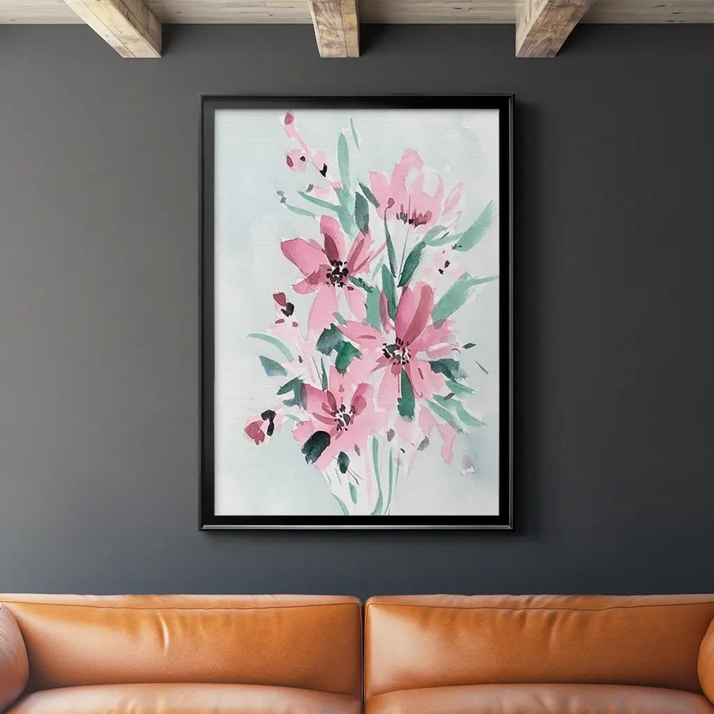 "Pink And Red" Floral Design Watercolor Floral Art Canvas Print, 20"x12"