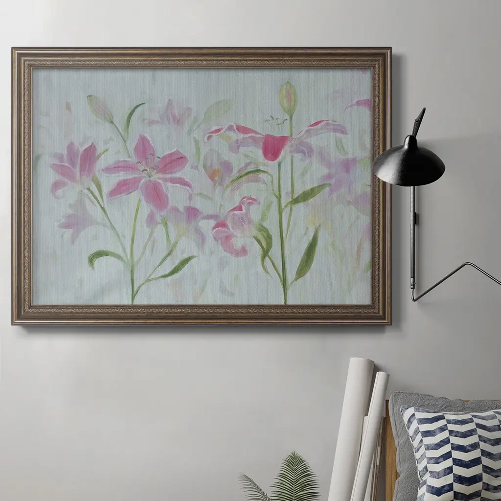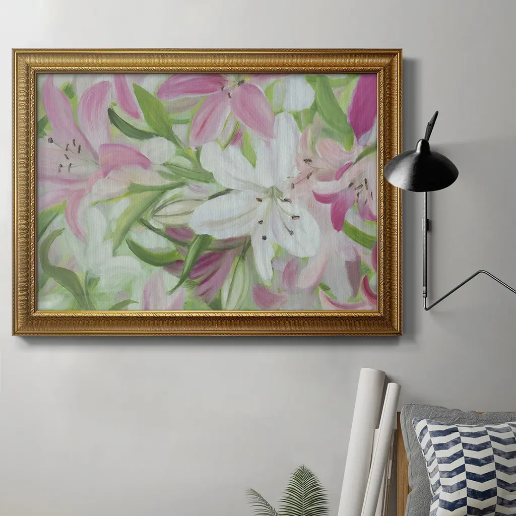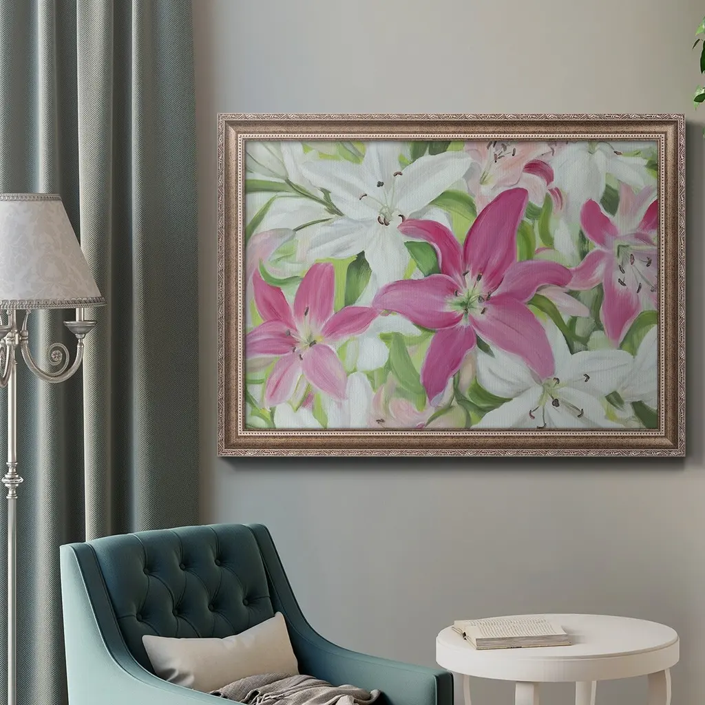 Pink And White Lilies Iii Premium Framed Canvas- Ready To Hang - 18x27 - Pewter
