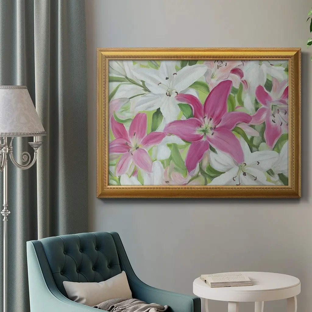 Pink And White Lilies Iii Premium Framed Canvas- Ready To Hang - 24x36 - Gold