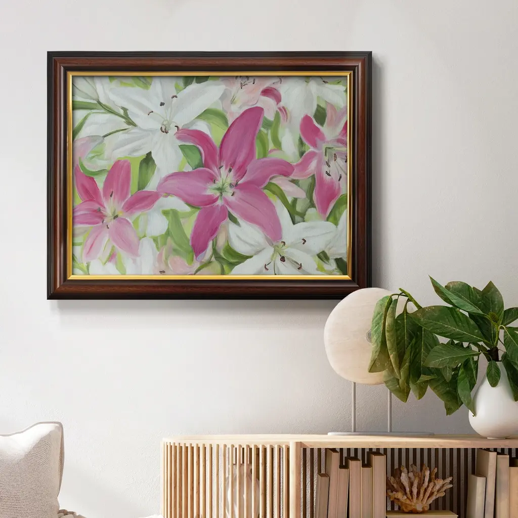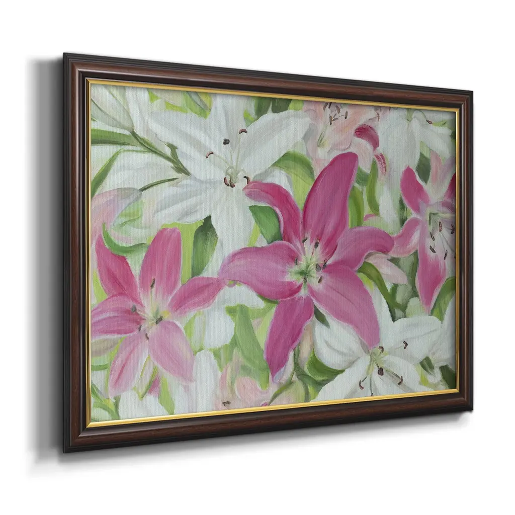 Pink And White Lilies Iii Premium Framed Canvas- Ready To Hang - 24x36 - Mahogany