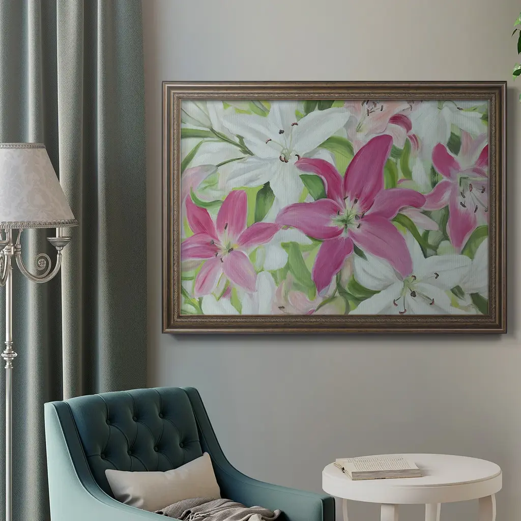 Pink And White Lilies Iii Premium Framed Canvas- Ready To Hang - 24x36 - Walnut