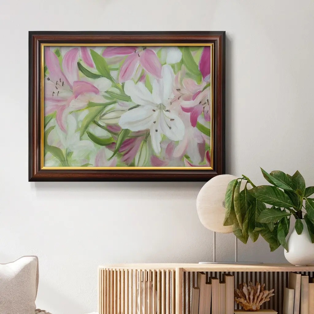 Pink And White Lilies Iv Premium Framed Canvas- Ready To Hang - 24x36 - Mahogany