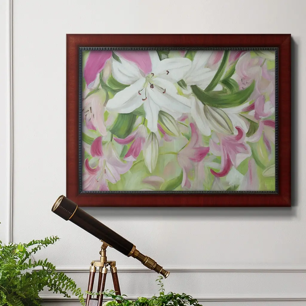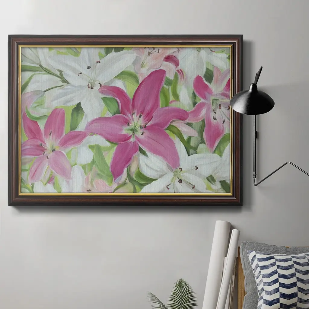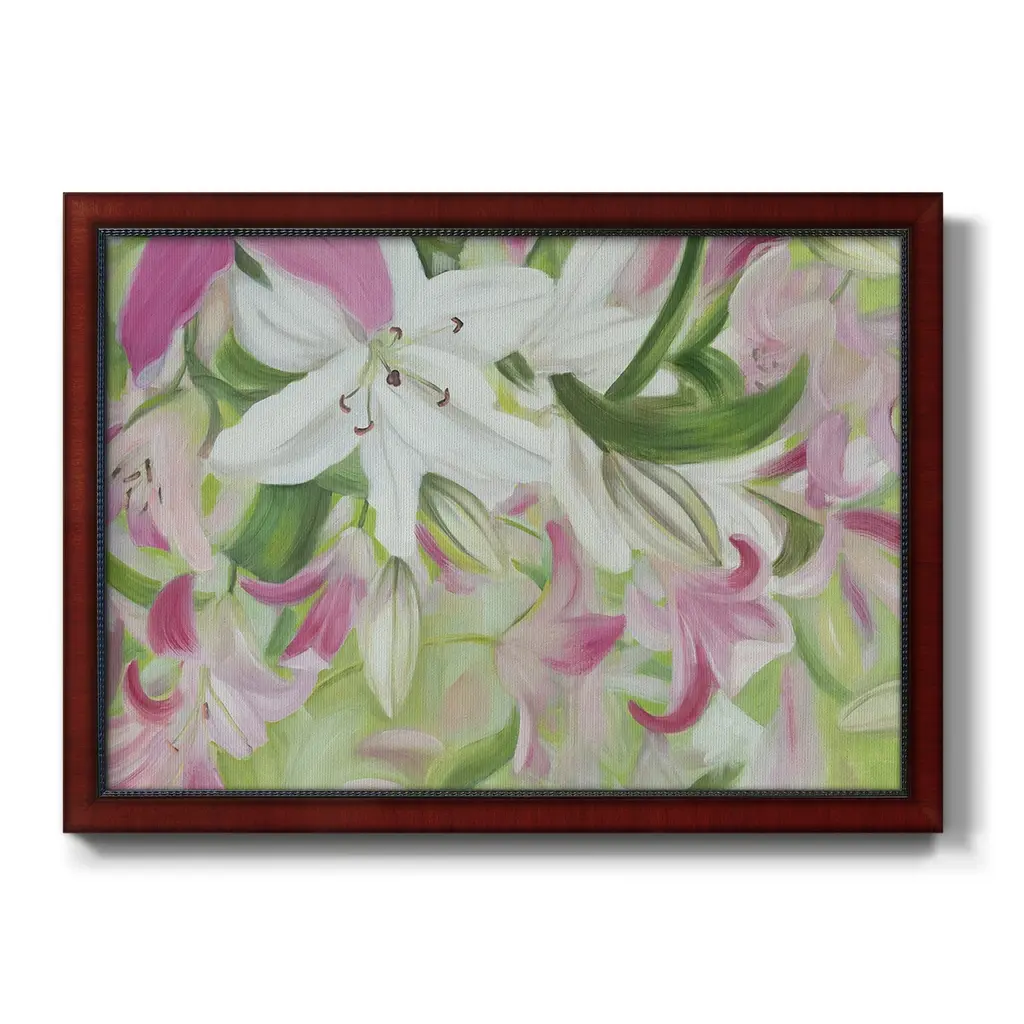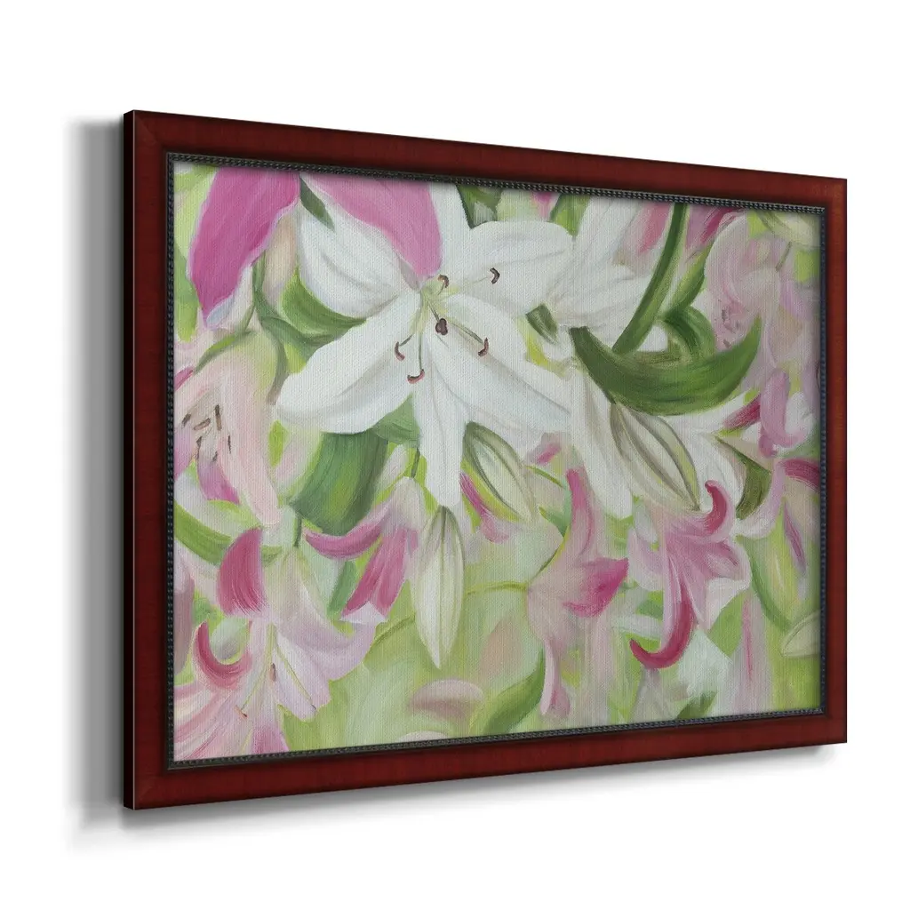 Pink And White Lilies V Premium Framed Canvas- Ready To Hang - 24x36 - Mahogany