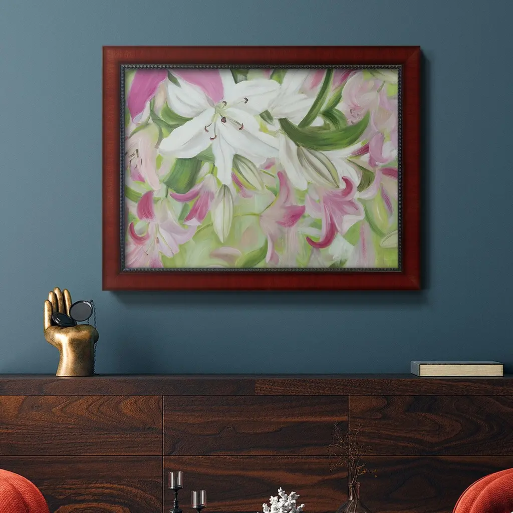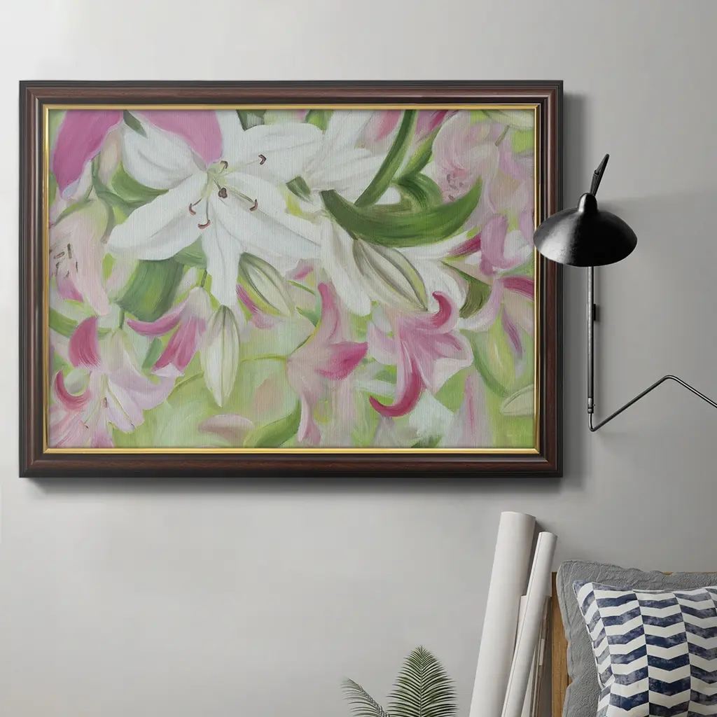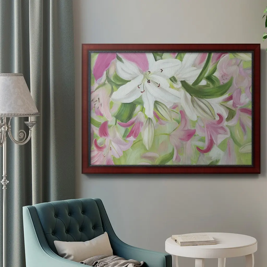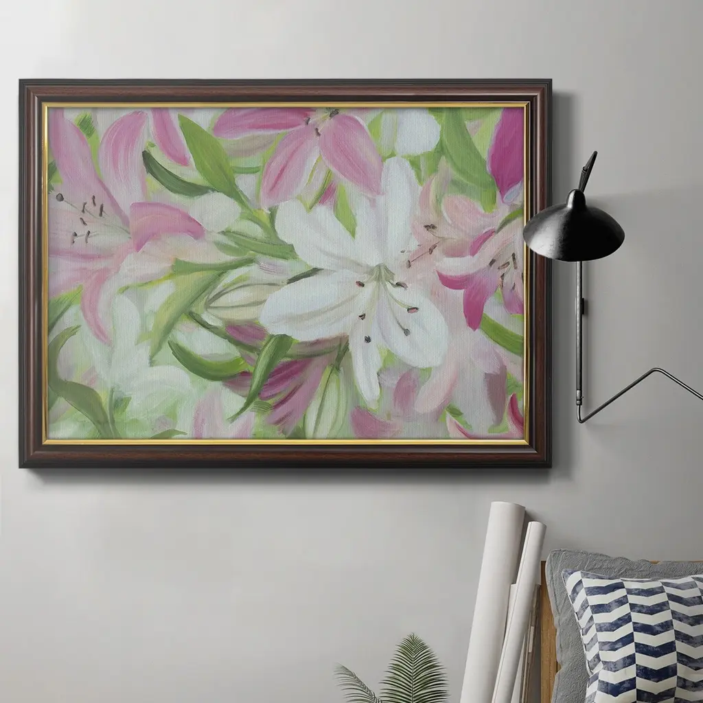 Pink And White Lilies V Premium Framed Canvas- Ready To Hang - 24x36 - Mahogany