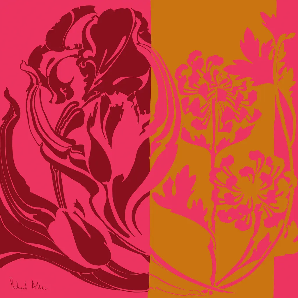 The Aster has long been considered as an enchanted flower and in Greek myth the name meaning rainbow, the link between heaven and earth; meanwhile the Iris is a symbol of power and majesty, its three petals representing faith, wisdom and valour.A limited edition print of 100, numbered and signed on museum etching paper, embossed with the Richard Allan London company seal. This design is a 1960s-70s original archive design from Richard Allan London and is made in England. Unframed.