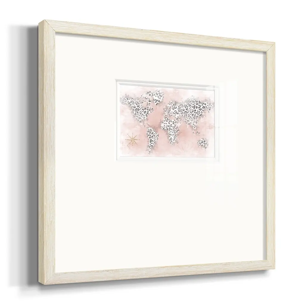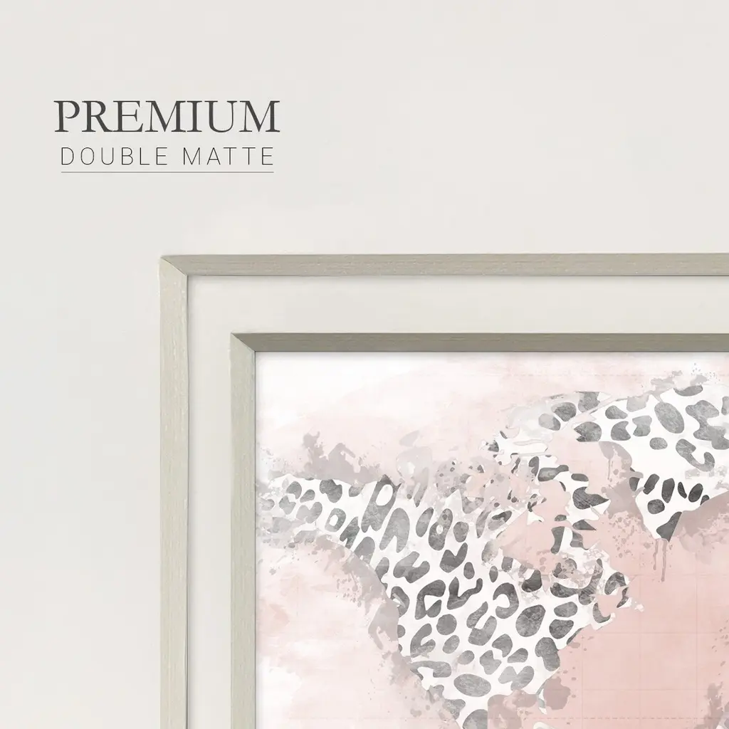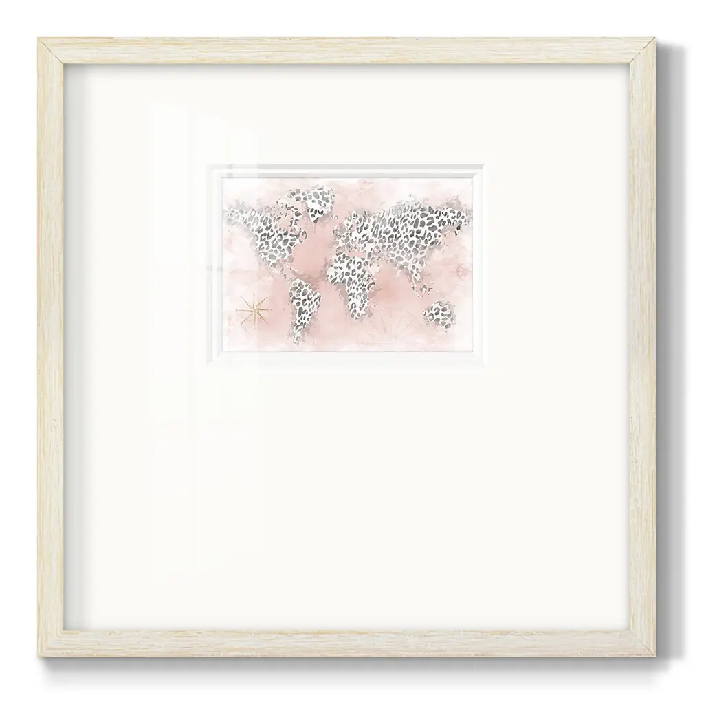 Pink Cheetah MapPremium Framed Print A framed cold pressed paper print featuring superior double matting and quality frame. 2 SIZES AVAILABLE 16''X16''' - Overall Size 20''X20''' - Overall Size Each piece is made to order. Each piece comes with hanging hardware. Made in the USA Ready to Hang Giclee Paper Print Plexiglass Beveled Matt Board Double Matte Board