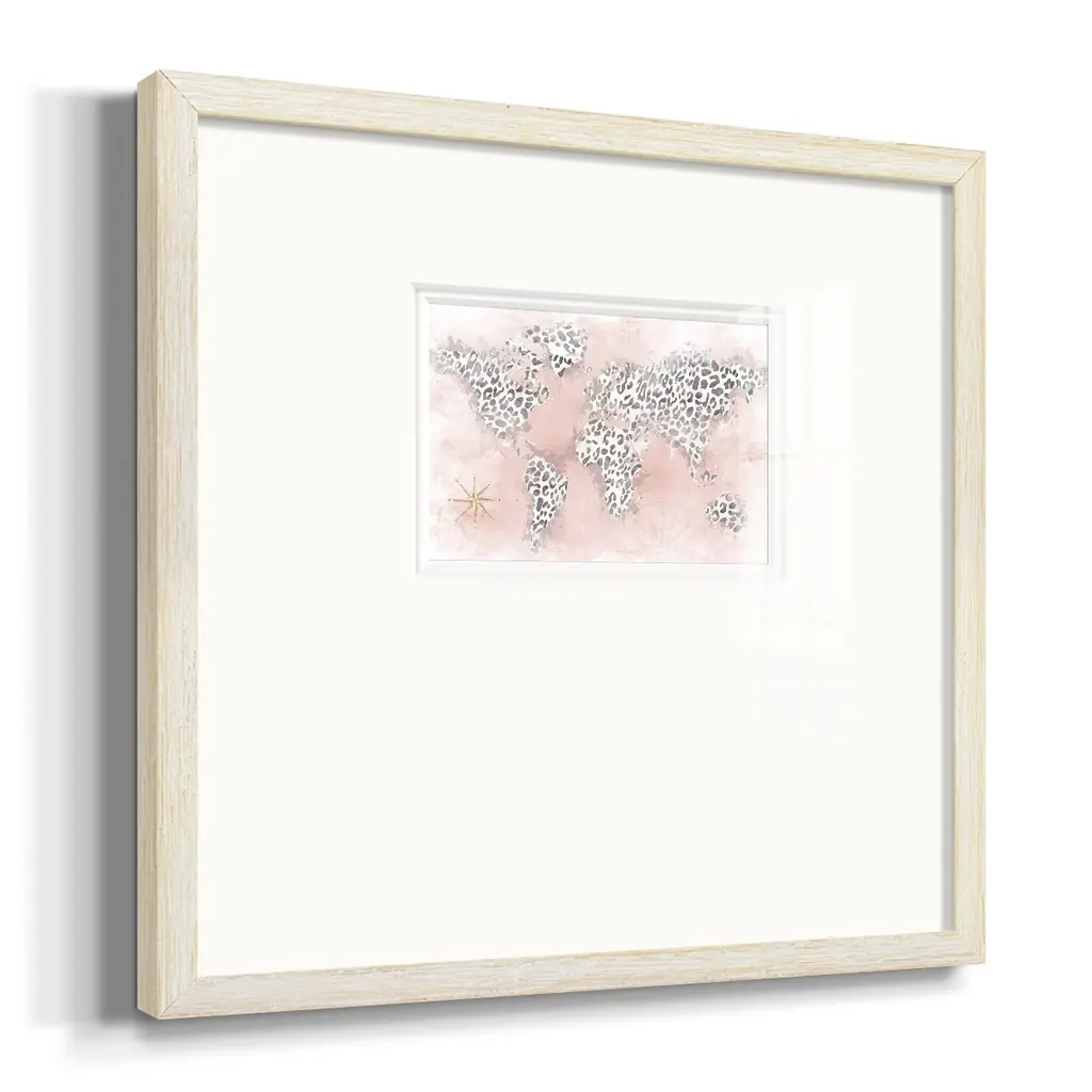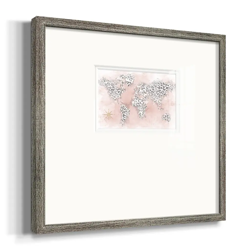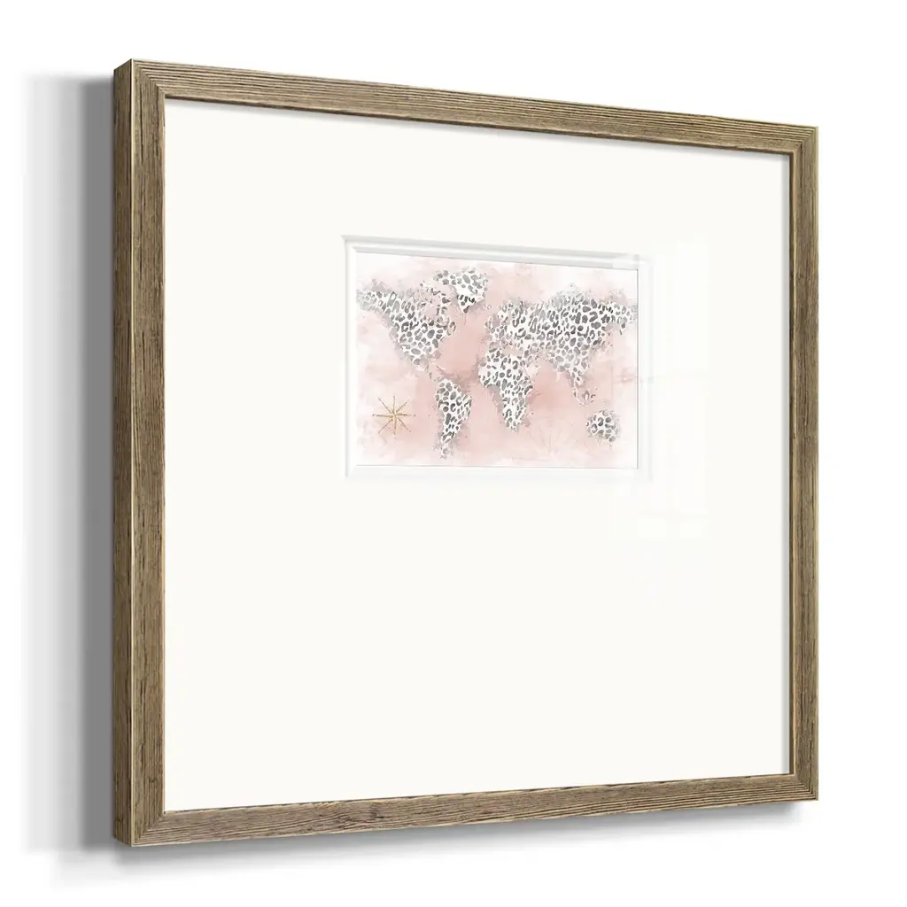 Pink Cheetah MapPremium Framed Print A framed cold pressed paper print featuring superior double matting and quality frame. 2 SIZES AVAILABLE 16''X16''' - Overall Size 20''X20''' - Overall Size Each piece is made to order. Each piece comes with hanging hardware. Made in the USA Ready to Hang Giclee Paper Print Plexiglass Beveled Matt Board Double Matte Board