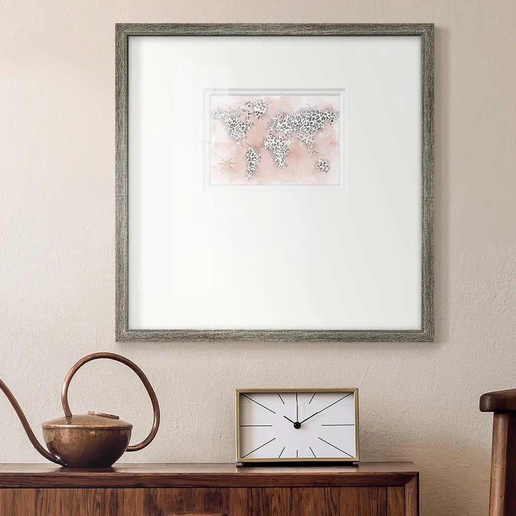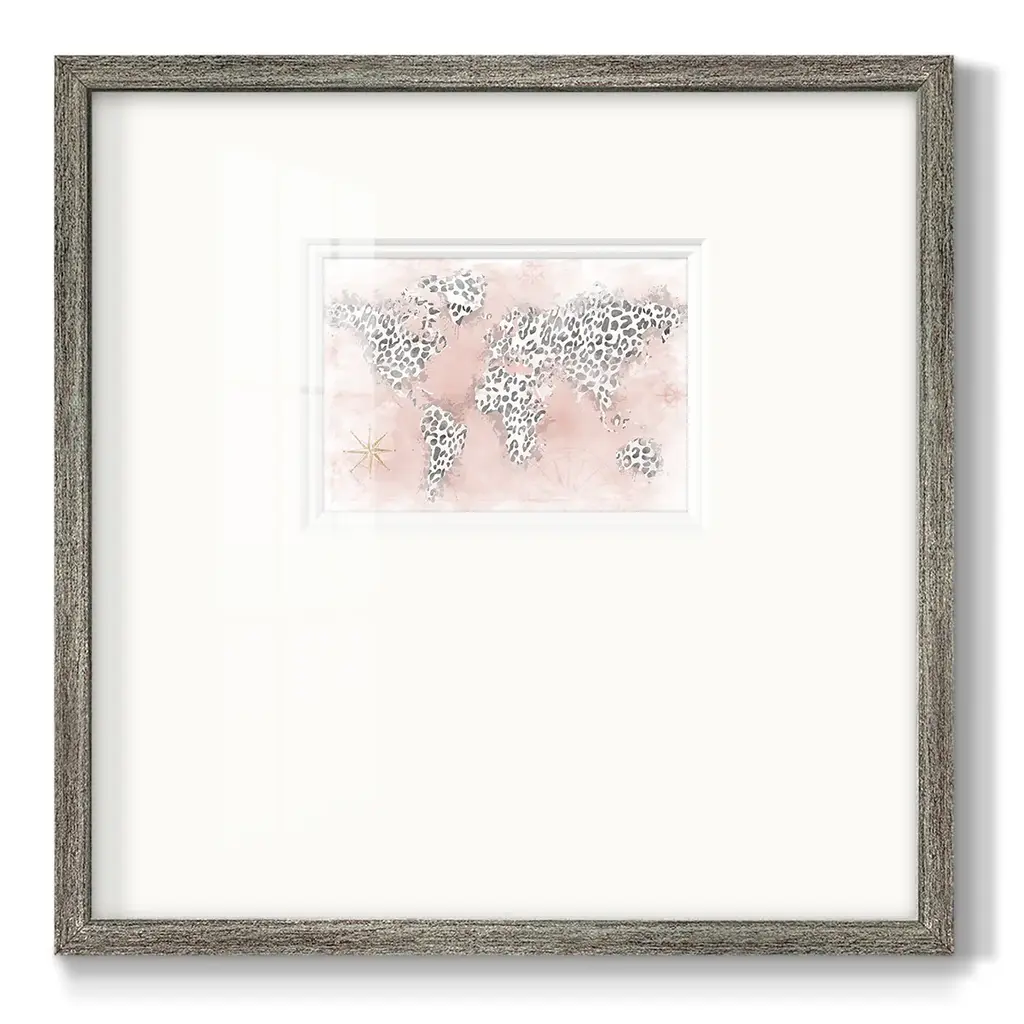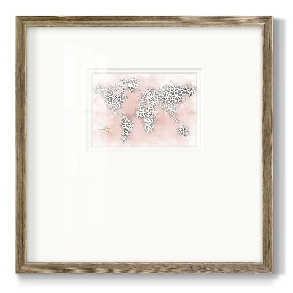 Pink Cheetah MapPremium Framed Print A framed cold pressed paper print featuring superior double matting and quality frame. 2 SIZES AVAILABLE 16''X16''' - Overall Size 20''X20''' - Overall Size Each piece is made to order. Each piece comes with hanging hardware. Made in the USA Ready to Hang Giclee Paper Print Plexiglass Beveled Matt Board Double Matte Board
