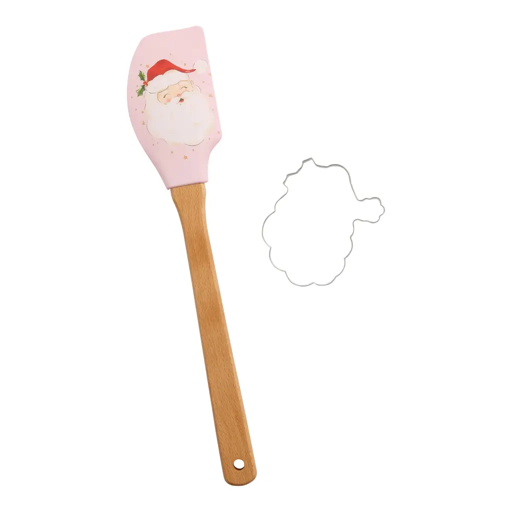Pink Coming To Town Santa Spatula And Cookie Cutter Set