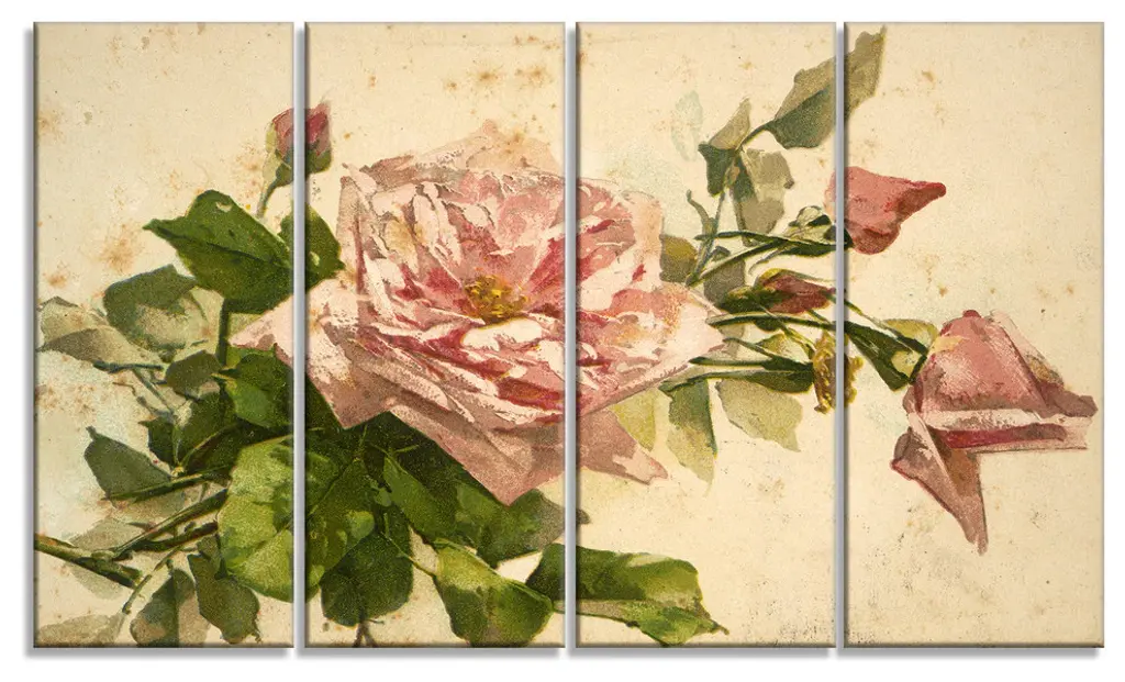 "Pink Flower Illustration" Canvas Print, 4 Panels, 48"x28"