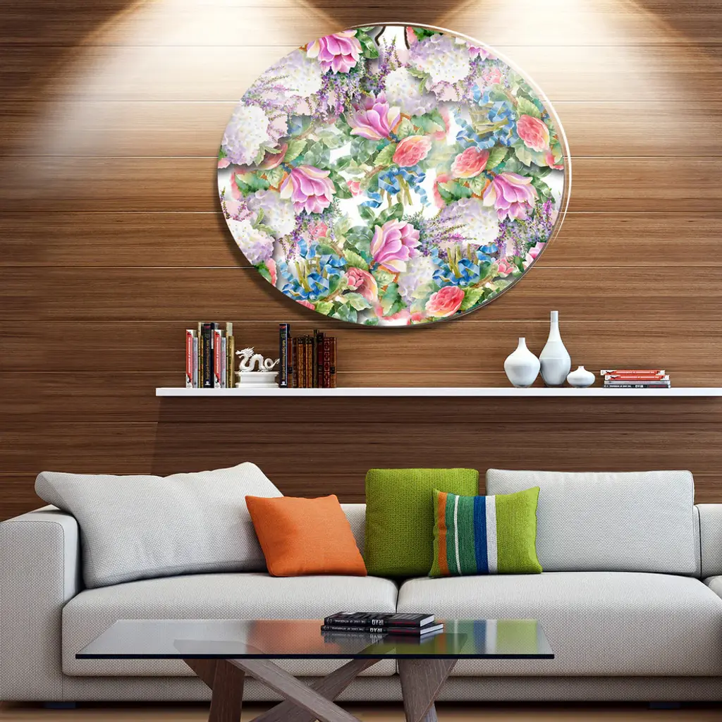Bring Contemporary Abstraction to your home with this large Circle Metal wall art. This Pink Flower Pattern on White Metal Artwork makes it the focal point of any room or office. - White Gloss Coating ensures colors are extra vibrant with light reflection.- Aluminum grade Sheet Metal with 1 inch mounting frame on the back giving the illusion that the artwork is floating on the wall..- Mounting Brackets are included along with instructions.- High Quality Digital images are created directly into a glossy aluminum panel producing a stunning and captivating print into the glossy finish of the metal.- Water, Fire and Scratch resistant HD Aluminum panels.- Looks better than any photo paper and guaranteed to last at least 20 years- Easy to clean with a microfiber cloth. Colors are far superior to regular Canvas Art. - Easy to Hang