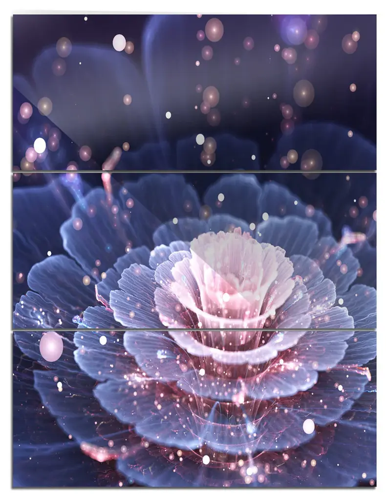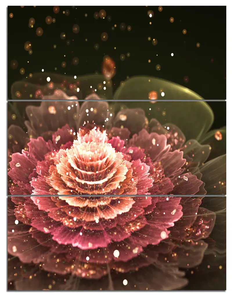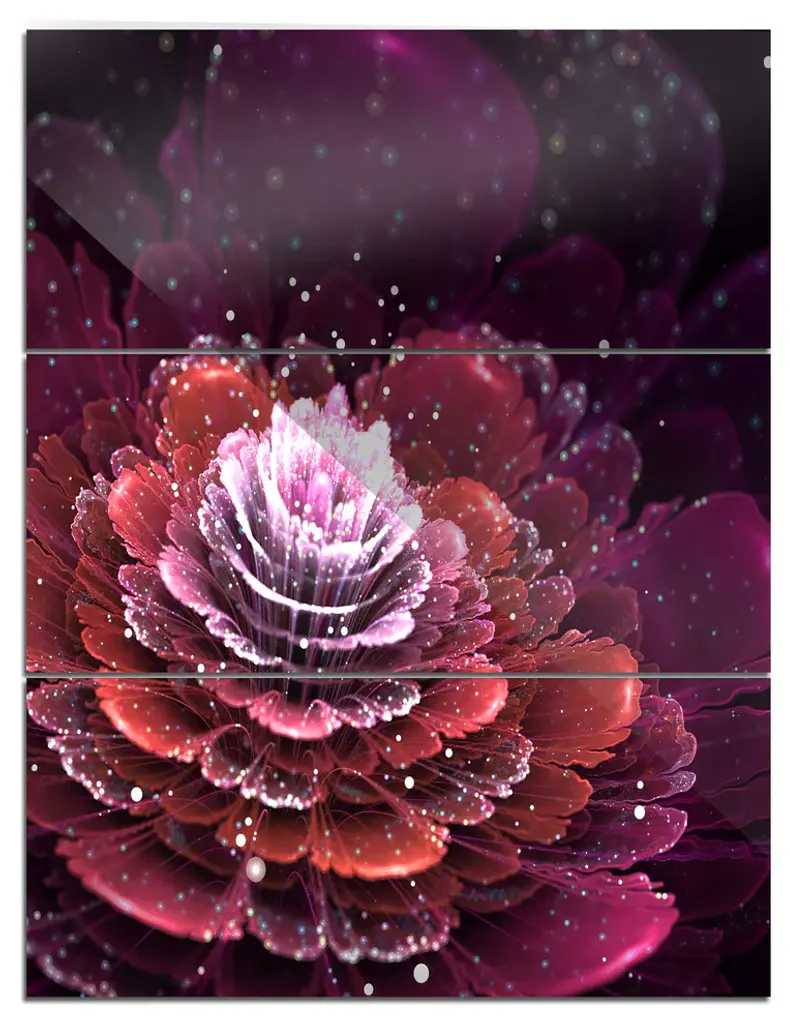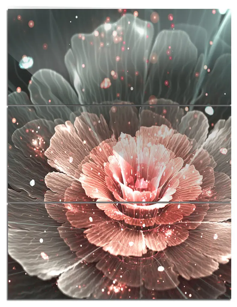 "Pink Flower With Sparkles" Digital Metal Wall Art, 3 Panels, 36"x28"