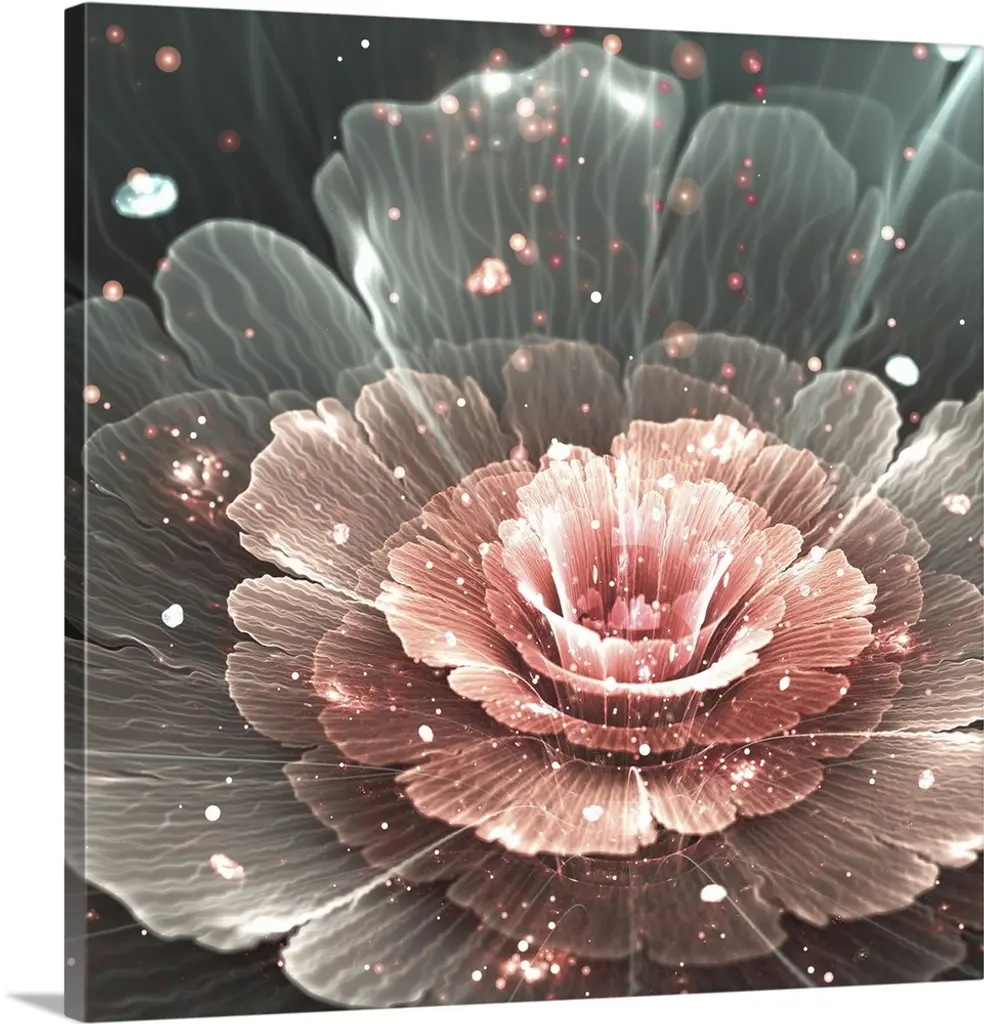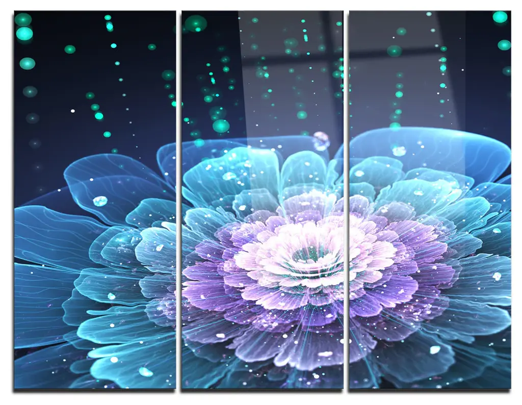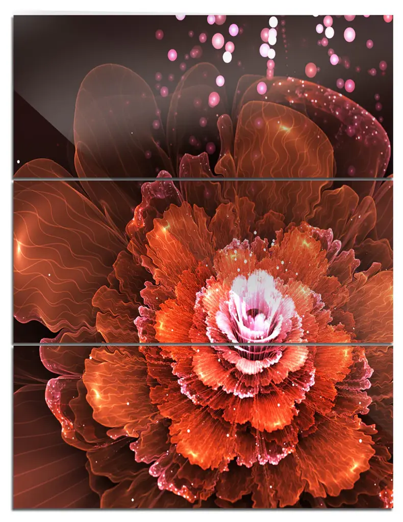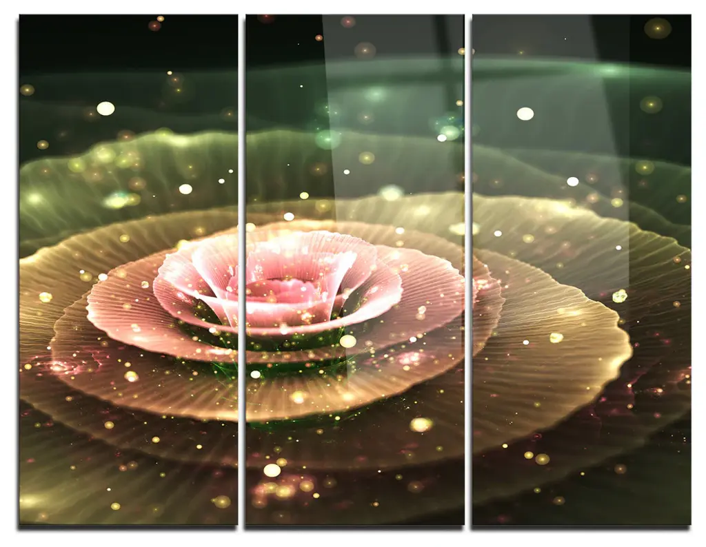 "Pink Flower With Sparkles" Digital Metal Wall Art, 3 Panels, 36"x28"