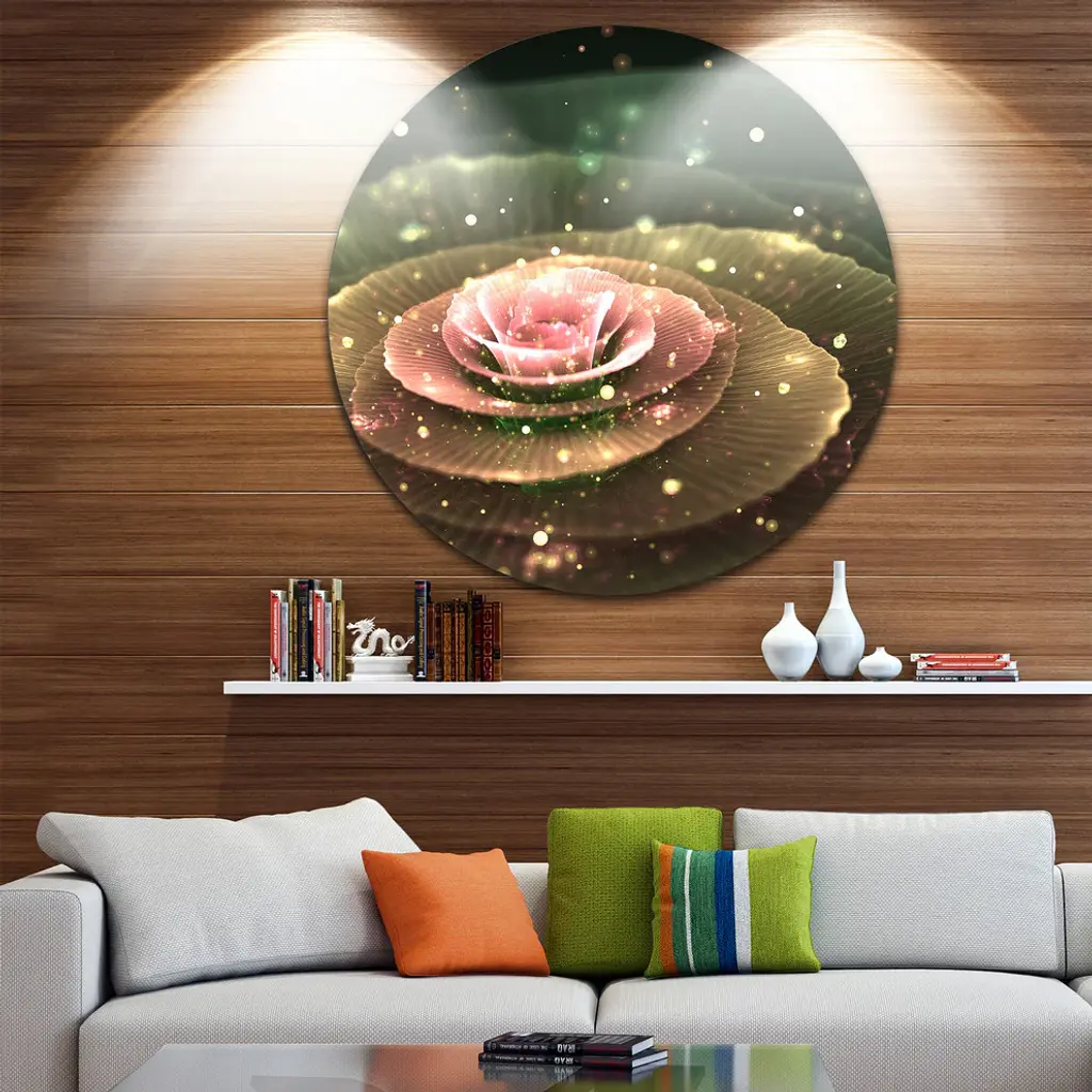 Pink Flower With Water Droplets, Floral Round Metal Wall Art, 38"