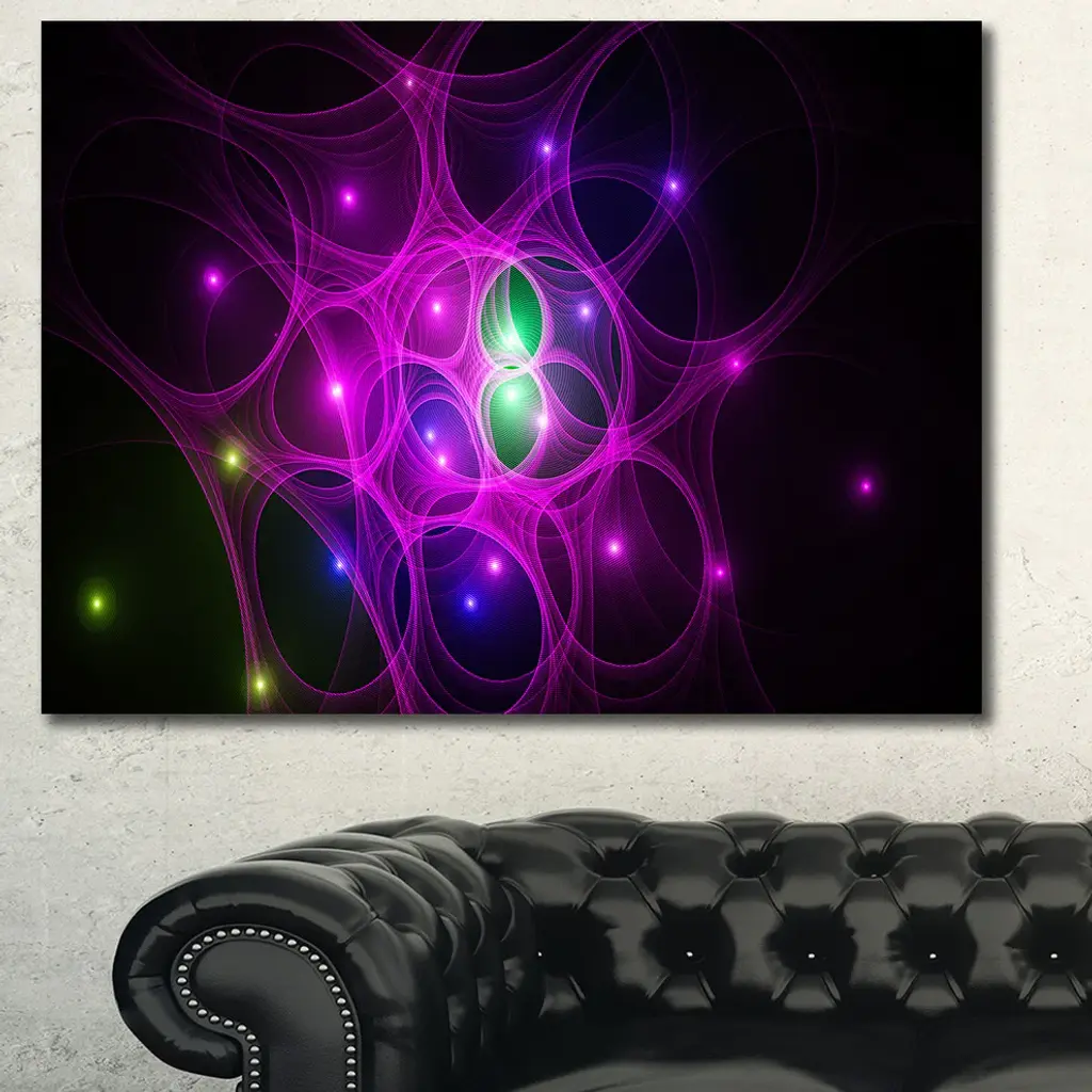 Pink Fractal Space Circles, Oversized Abstract Canvas Art Print, 60x40