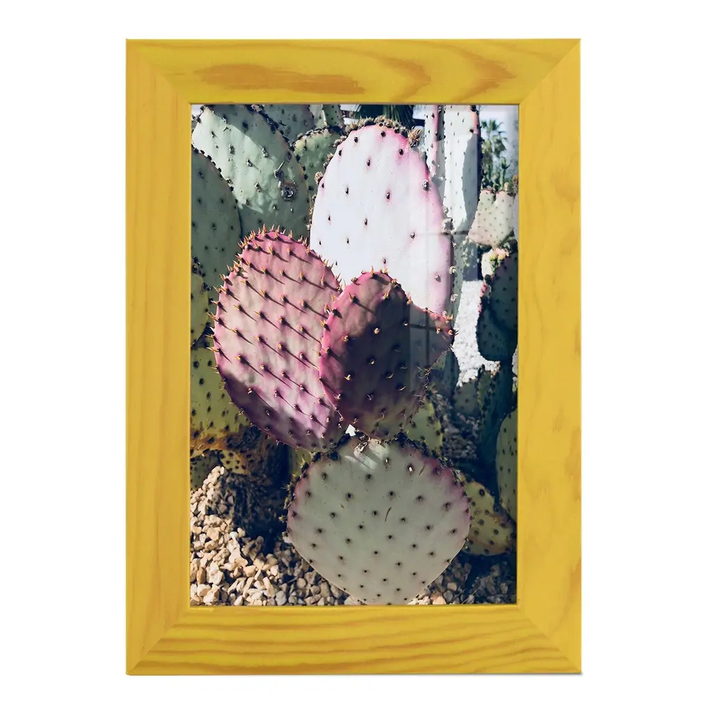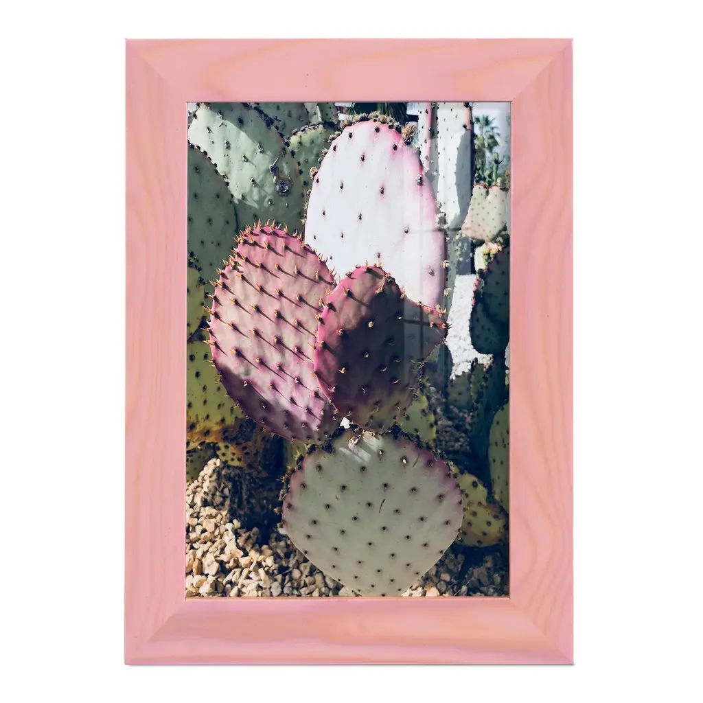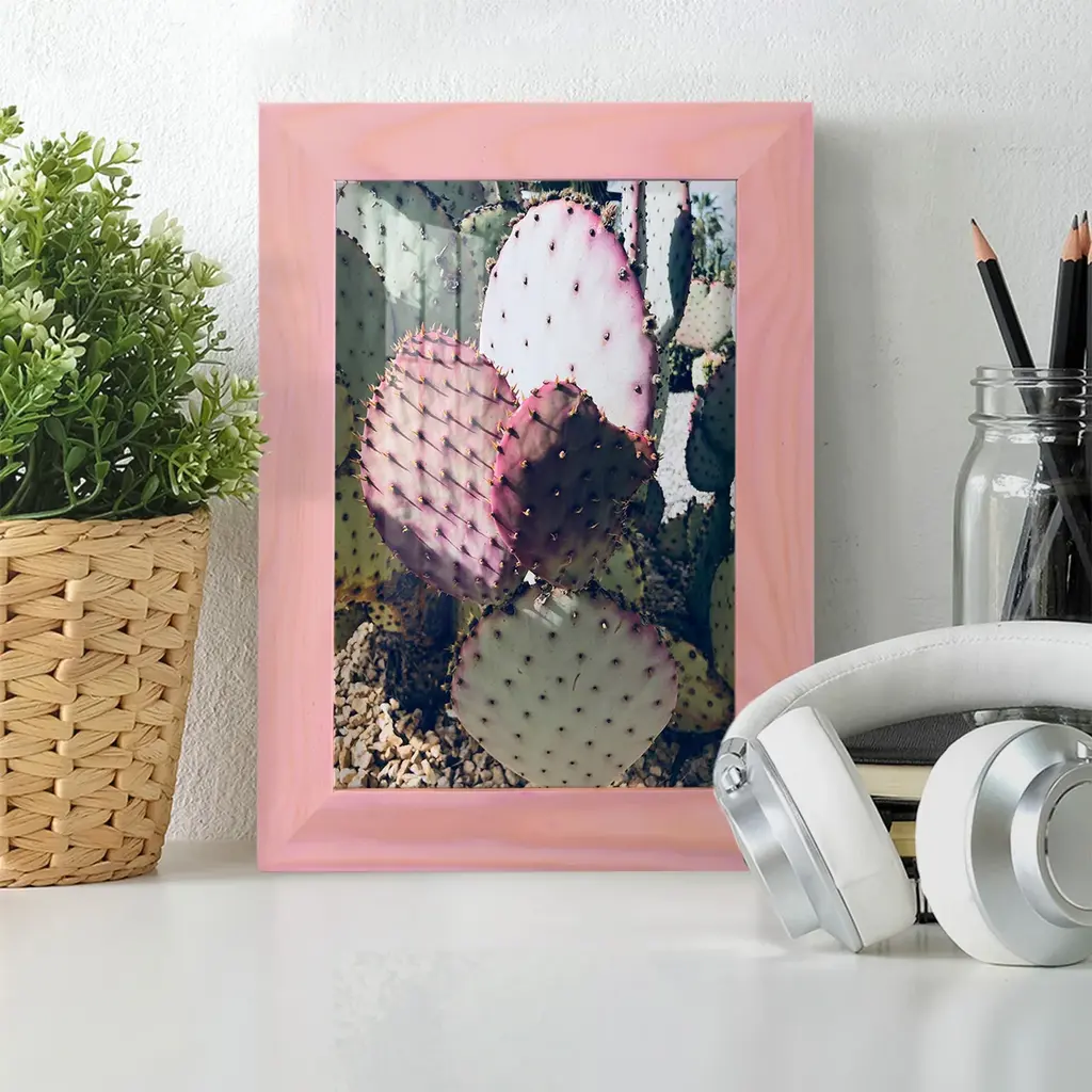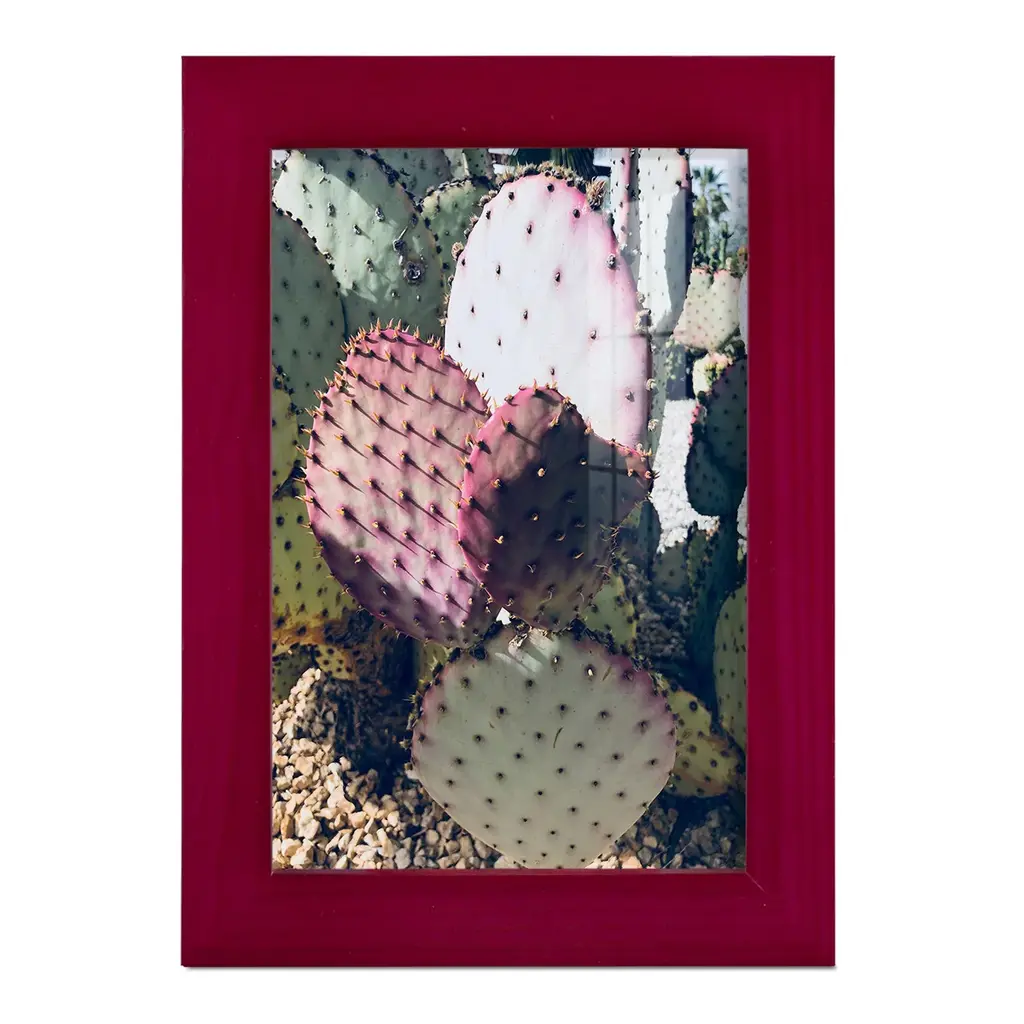 Pink Green Cactus Iii -Framed Print W/glass-Cherry Red - 12x15 - Maple