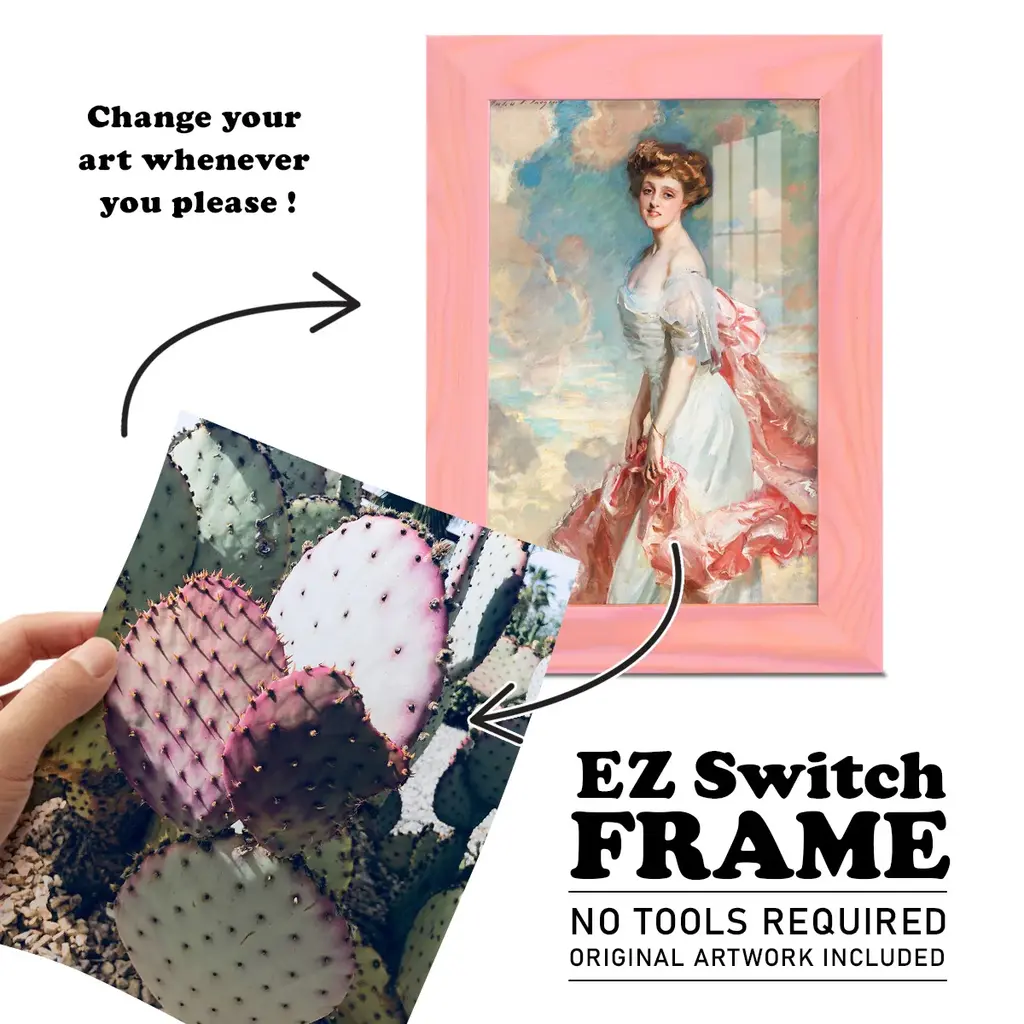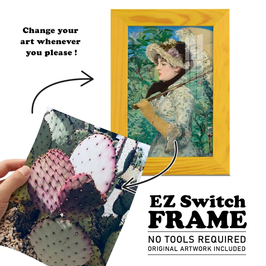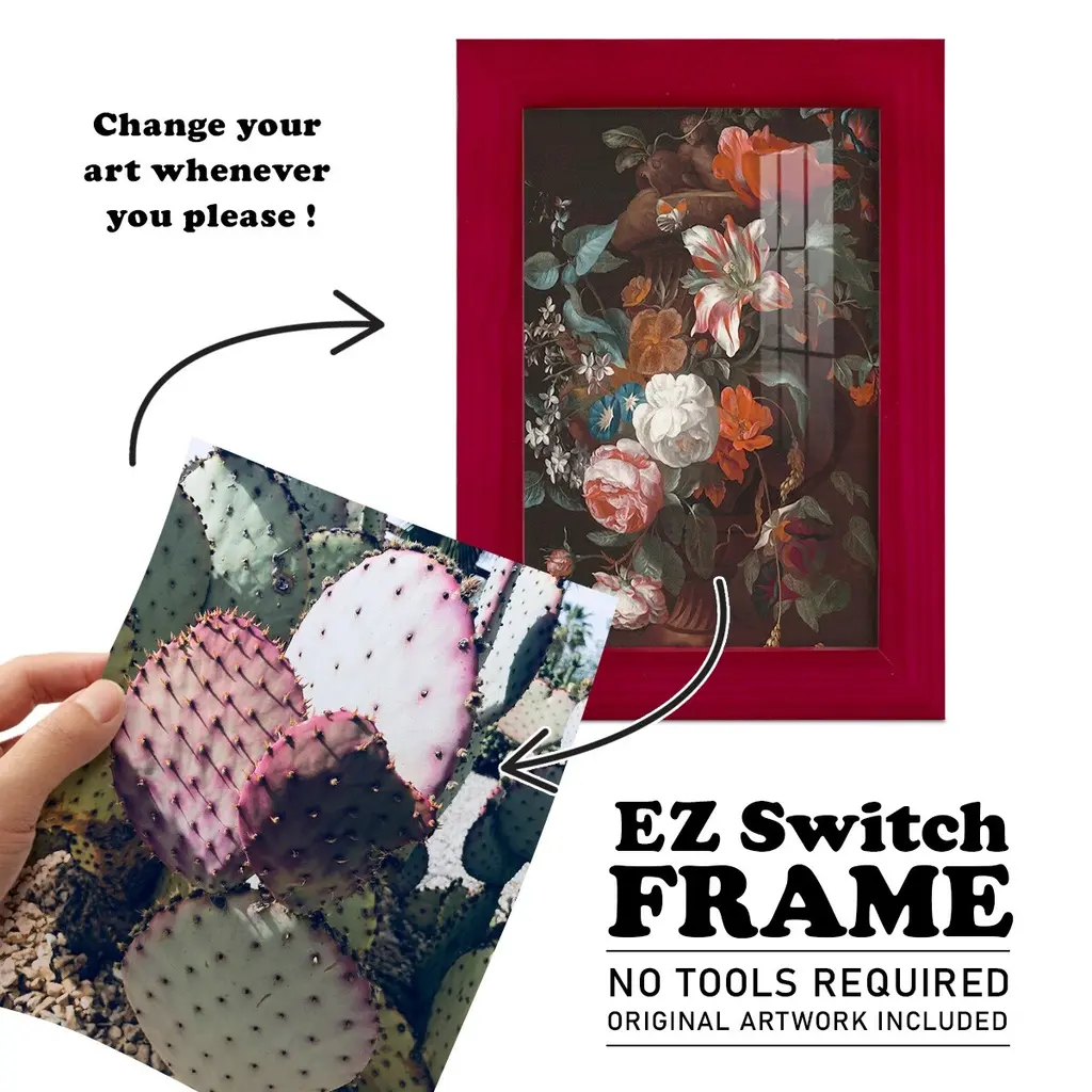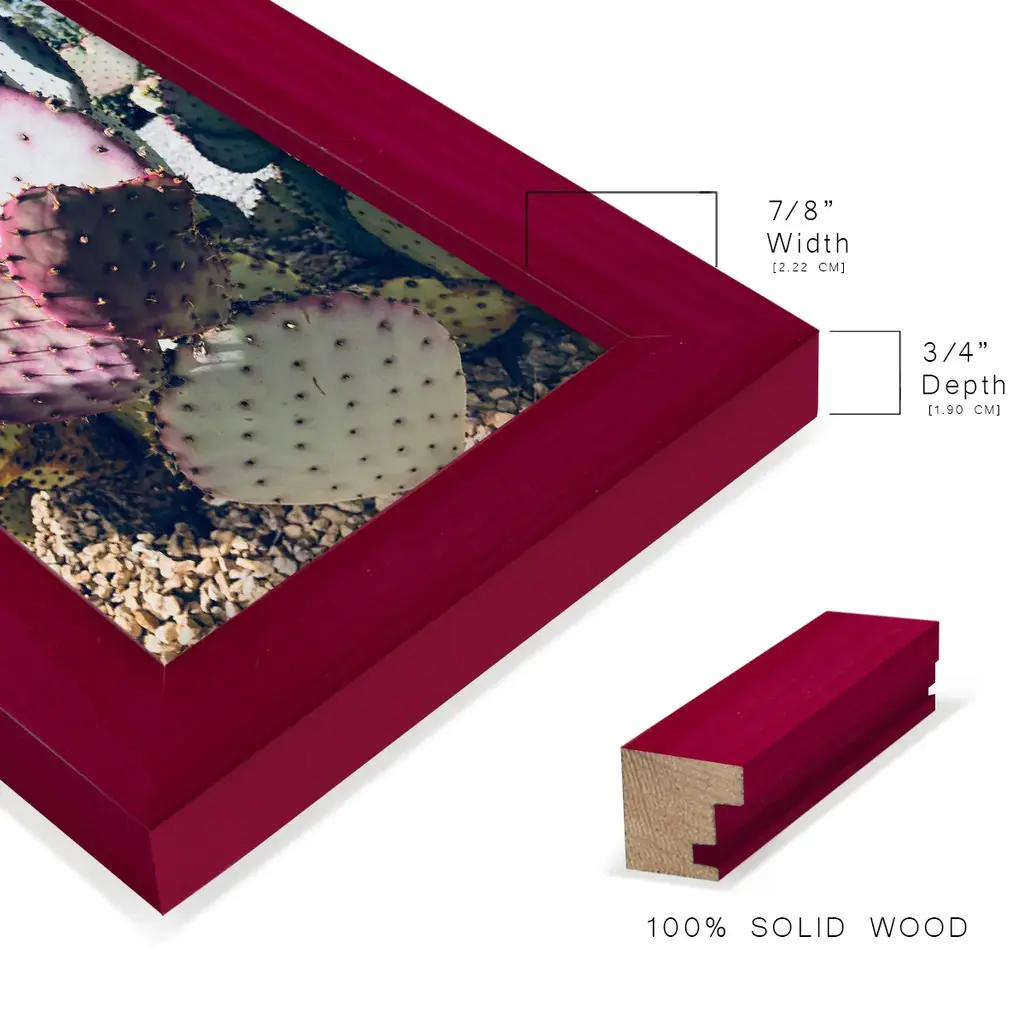 Pink Green Cactus III -EZ SWITCH Framed Print w/glass-Cherry Red A delightful, framed print. Featuring a solid wood frame with real wood glass. This premium print is giclee quality. In addition, every frame features a removable back and table top stand. This allows you to change your art in the future or to just stand the art on a table for a new look. We are sure you'll enjoy our new series of EZ SWITCH Framed Art. Solid Wood Frame Real Glass Removable / Replaceable Art Built in Tabletop Stand Sizes range from 4x6 up to 12x15 - buy just one or pair them up as sets as you see fit.