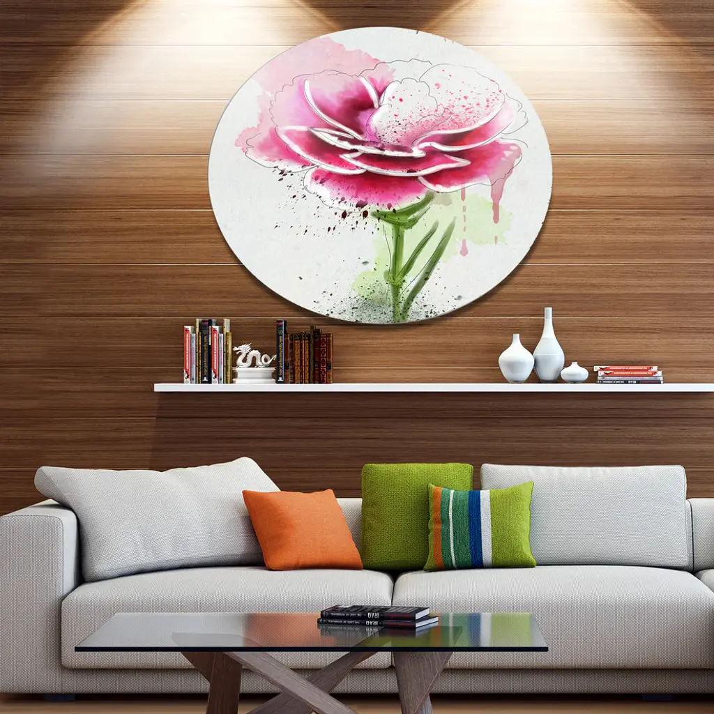 Bring Contemporary Abstraction to your home with this large Circle Metal wall art. This Pink Hand-drawn Watercolor Flower Metal Artwork makes it the focal point of any room or office. - White Gloss Coating ensures colors are extra vibrant with light reflection.- Aluminum grade Sheet Metal with 1 inch mounting frame on the back giving the illusion that the artwork is floating on the wall..- Mounting Brackets are included along with instructions.- High Quality Digital images are created directly into a glossy aluminum panel producing a stunning and captivating print into the glossy finish of the metal.- Water, Fire and Scratch resistant HD Aluminum panels.- Looks better than any photo paper and guaranteed to last at least 20 years- Easy to clean with a microfiber cloth. Colors are far superior to regular Canvas Art. - Easy to Hang