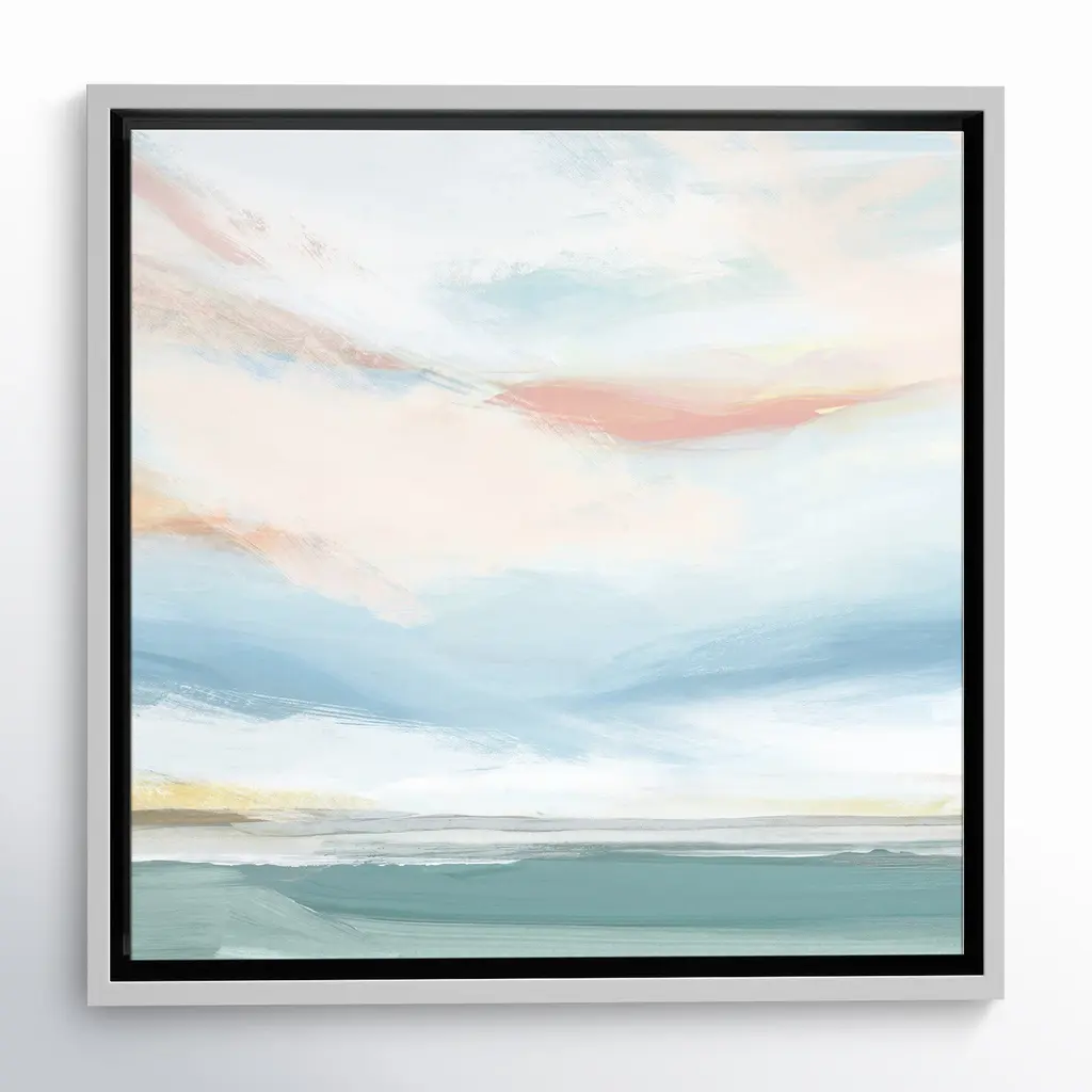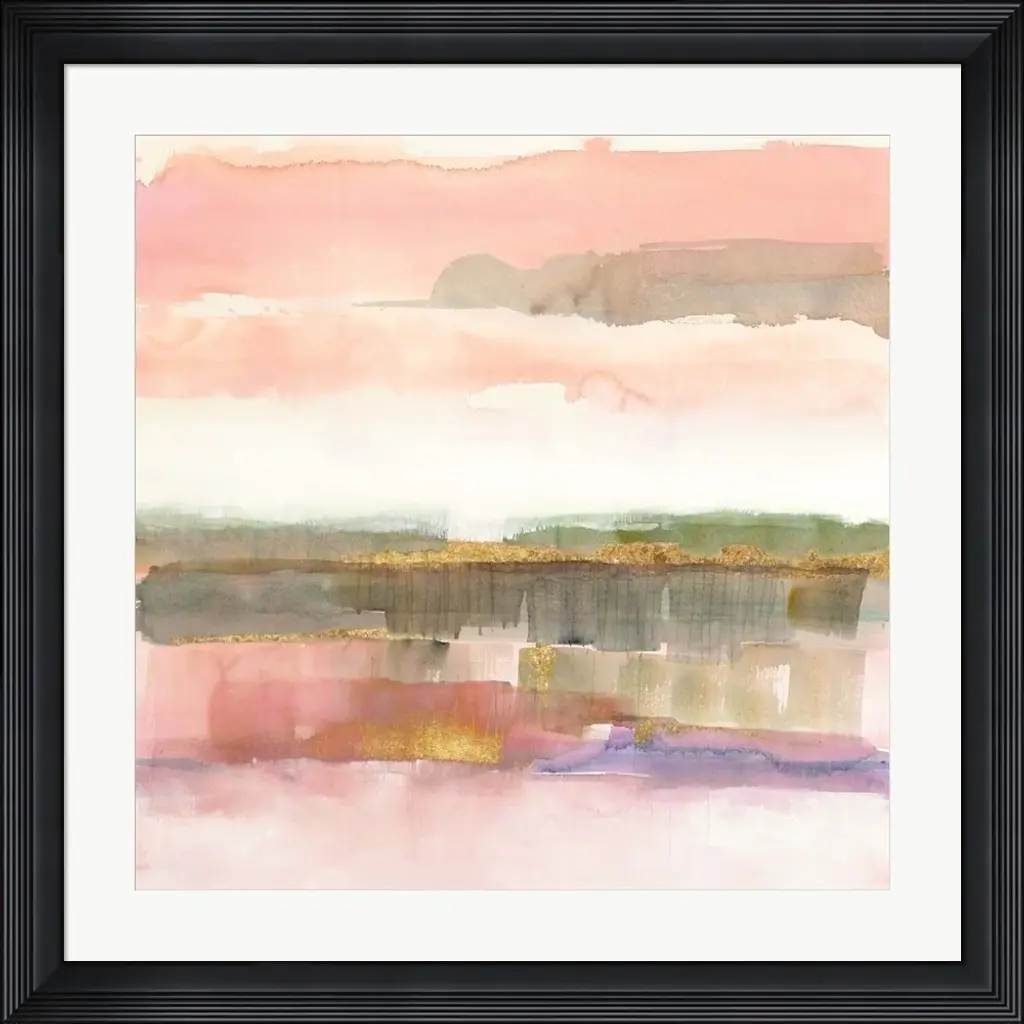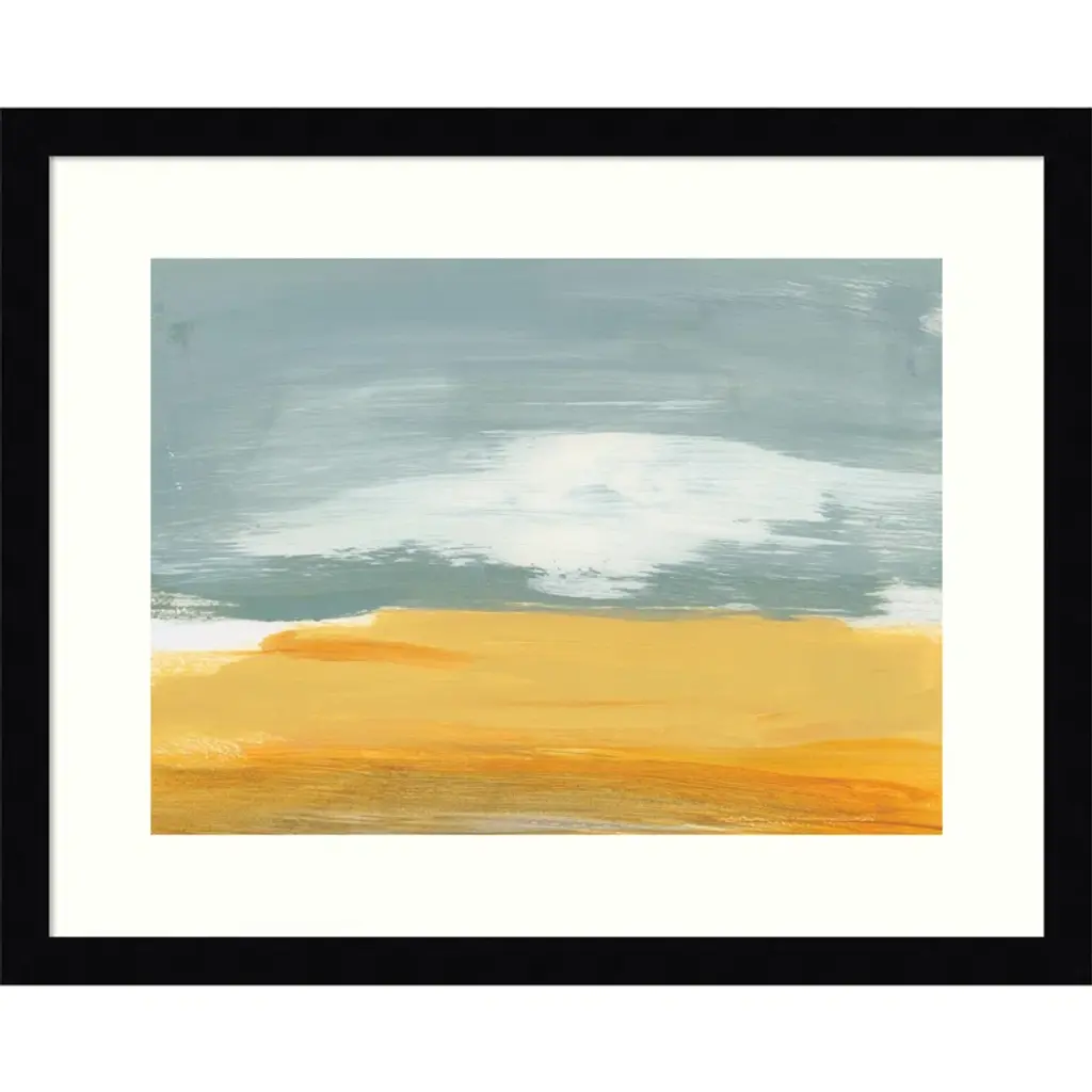 Reminiscent of abstract artwork, this painting print brings swirls of stunning color to your walls. Designed by Emma Scarvey, it features a bright peach-hued sky at sunset with subtle clouds in white and green brushstrokes at the bottom for a soothing coastal farmhouse feel. This rectangular painting is printed on paper, and it's set within a sleek picture frame for a gallery-worthy look. A hook affixed to the back makes it a cinch to hang right out of the box.