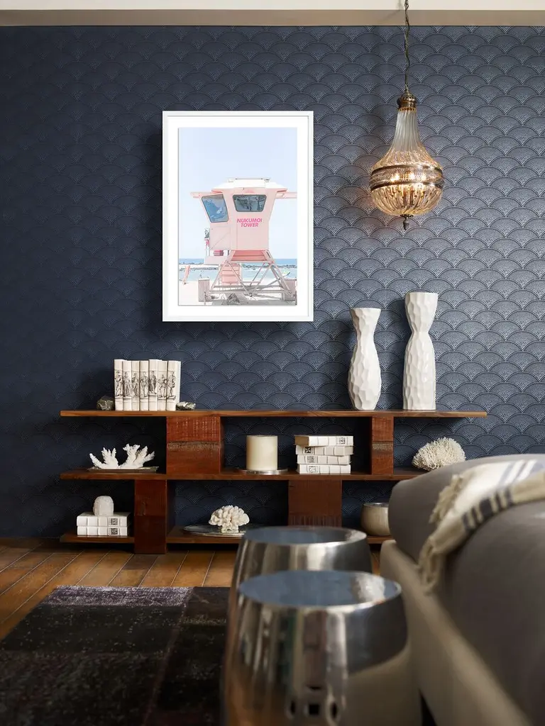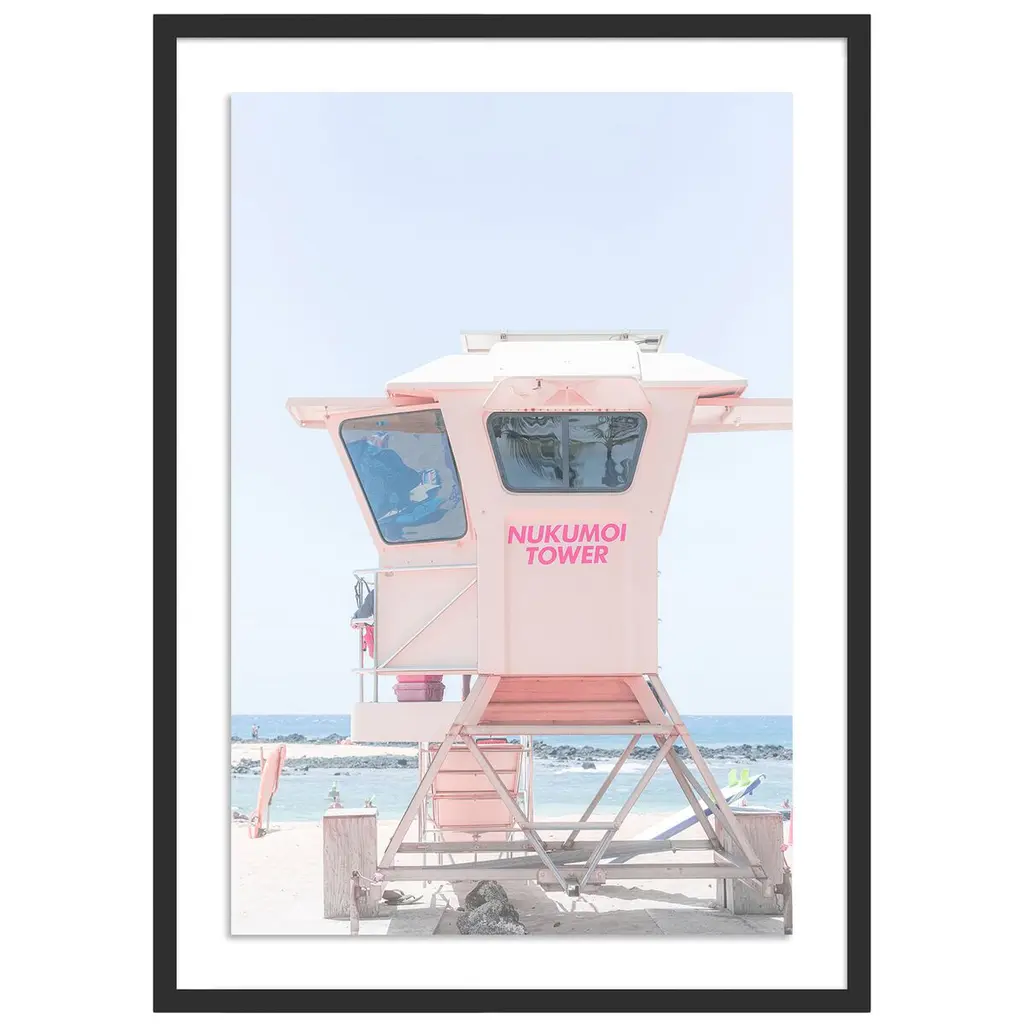 Pink Lifeguard Tower Hawaii/Carly Tabak/Framed Paper/White/M