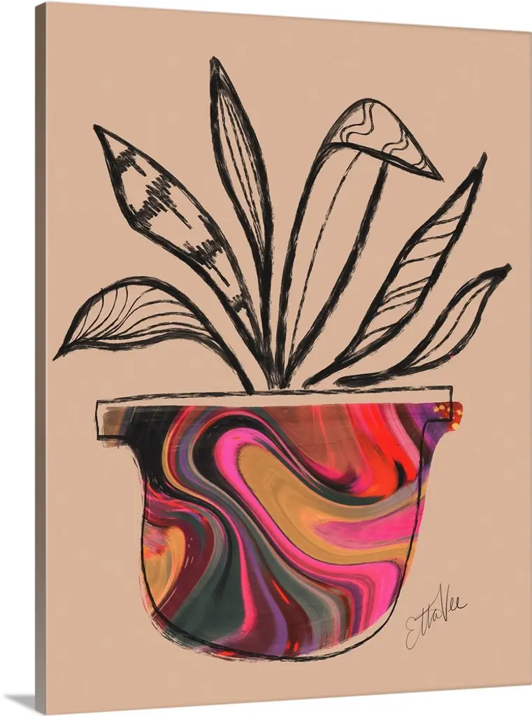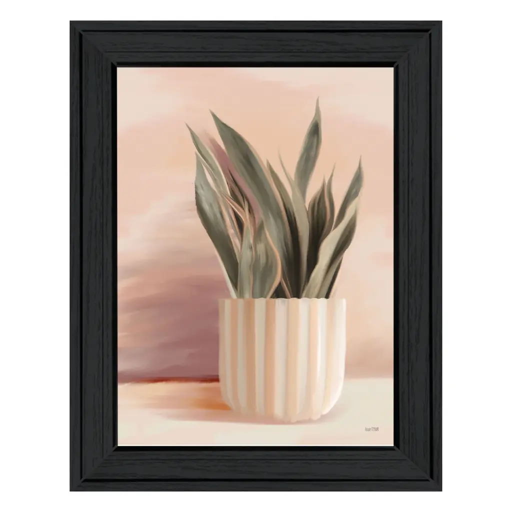 Pink Pot Succulent Line Drawing Framed Giclee Texturized Art, 12x12