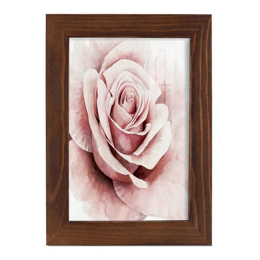 Pink Rose I -Framed Print W/glass-Cherry Red - 12x15 - Walnut