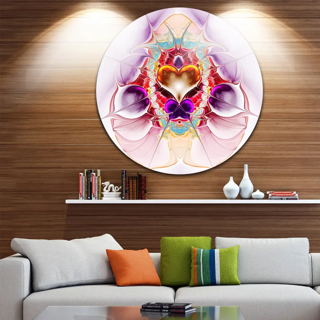 Pink Symmetrical Fractal Heart, Abstract Disc Metal Wall Art, 23"