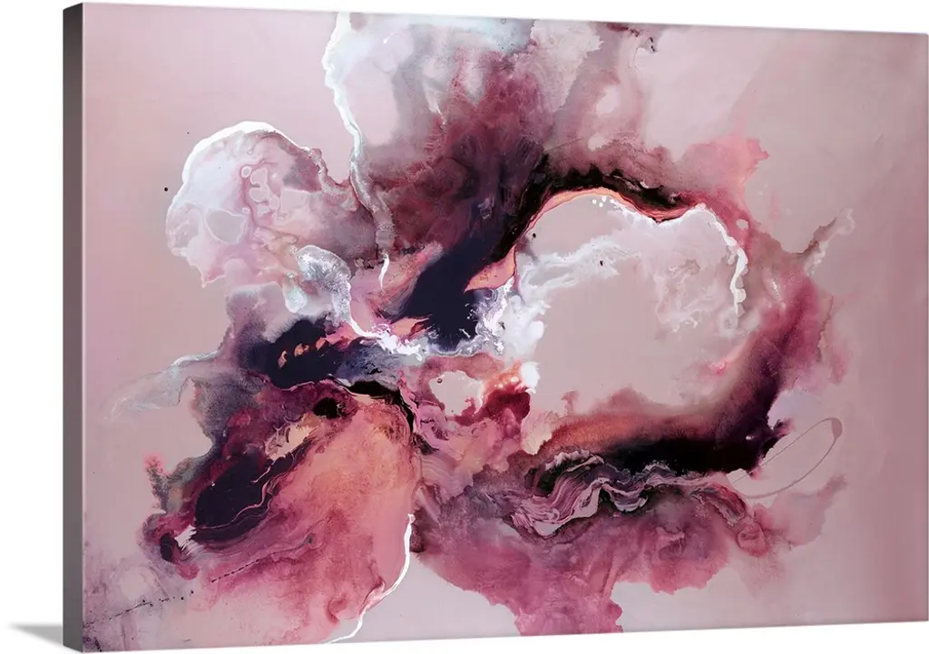 Pink White Fractal Glass Texture, Oversized Abstract Canvas Art Print, 60x40