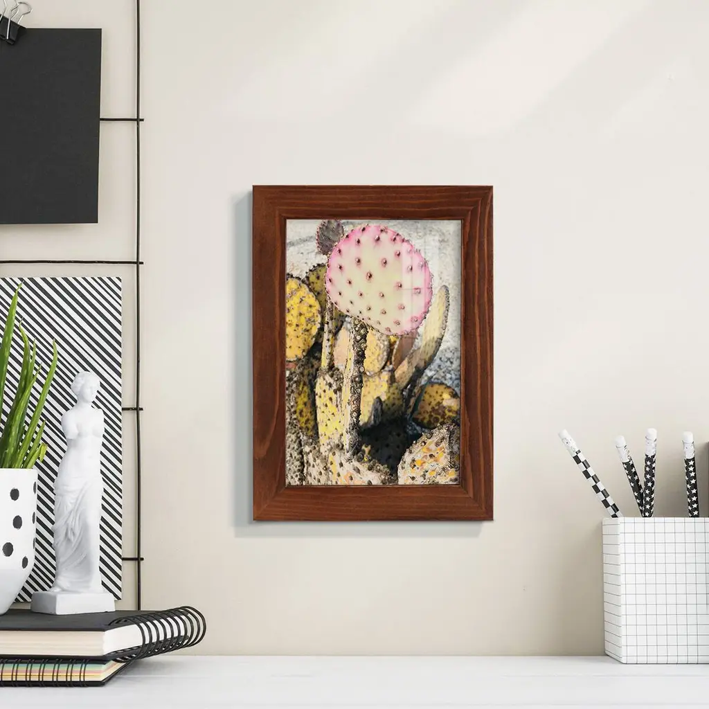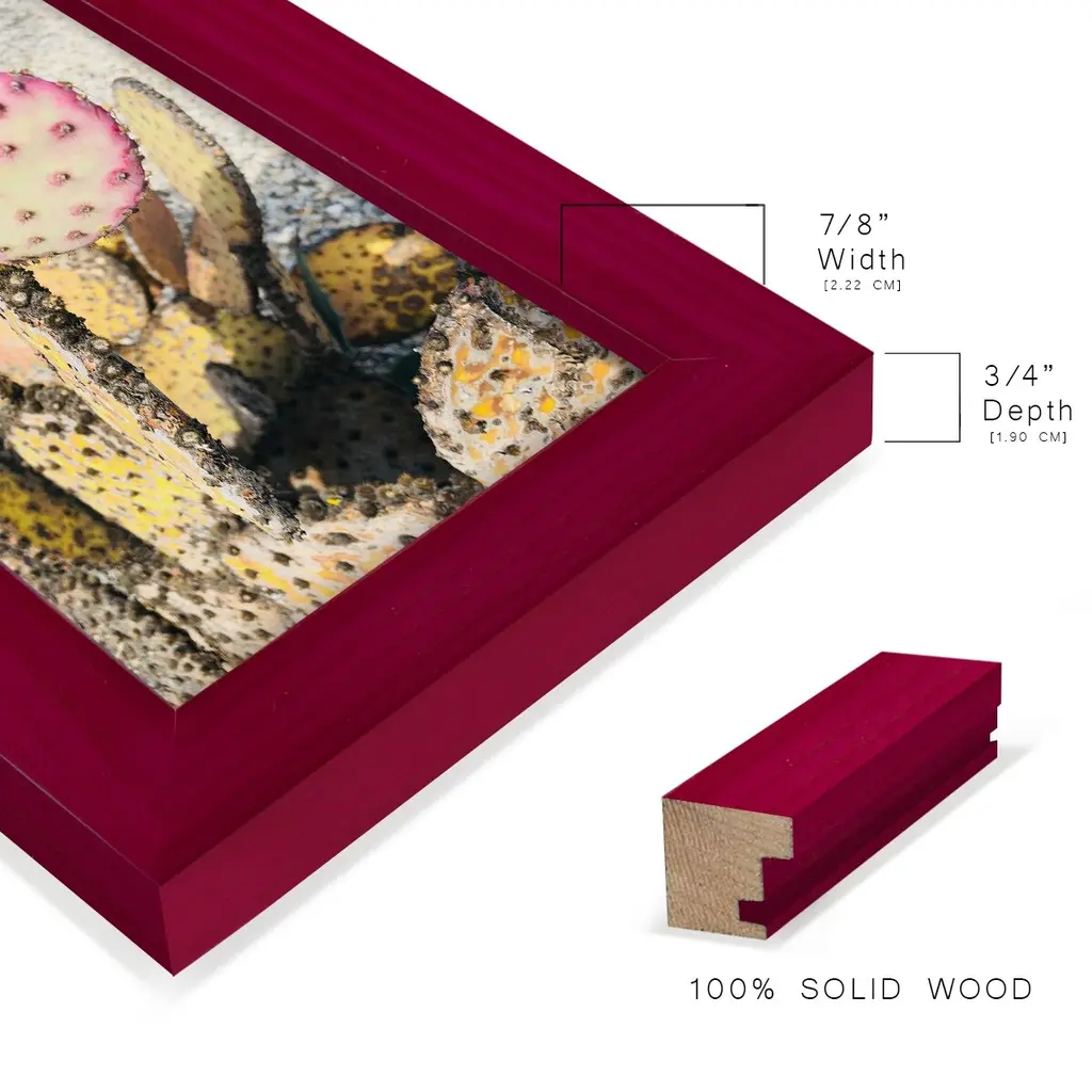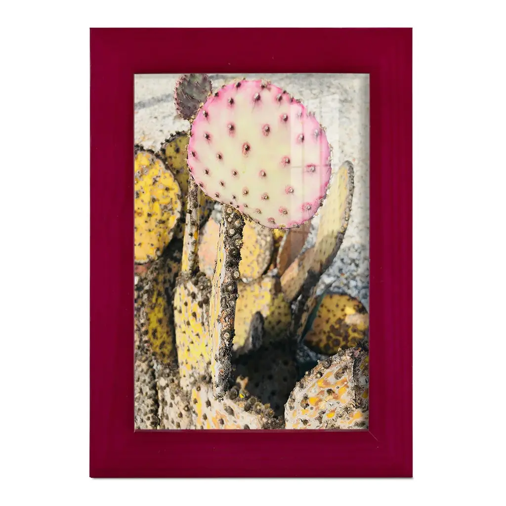 Pink Yellow Cactus II -EZ SWITCH Framed Print w/glass-Cherry Red A delightful, framed print. Featuring a solid wood frame with real wood glass. This premium print is giclee quality. In addition, every frame features a removable back and table top stand. This allows you to change your art in the future or to just stand the art on a table for a new look. We are sure you'll enjoy our new series of EZ SWITCH Framed Art. Solid Wood Frame Real Glass Removable / Replaceable Art Built in Tabletop Stand Sizes range from 4x6 up to 12x15 - buy just one or pair them up as sets as you see fit.