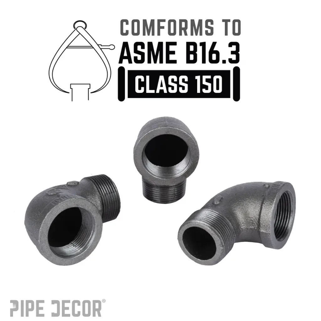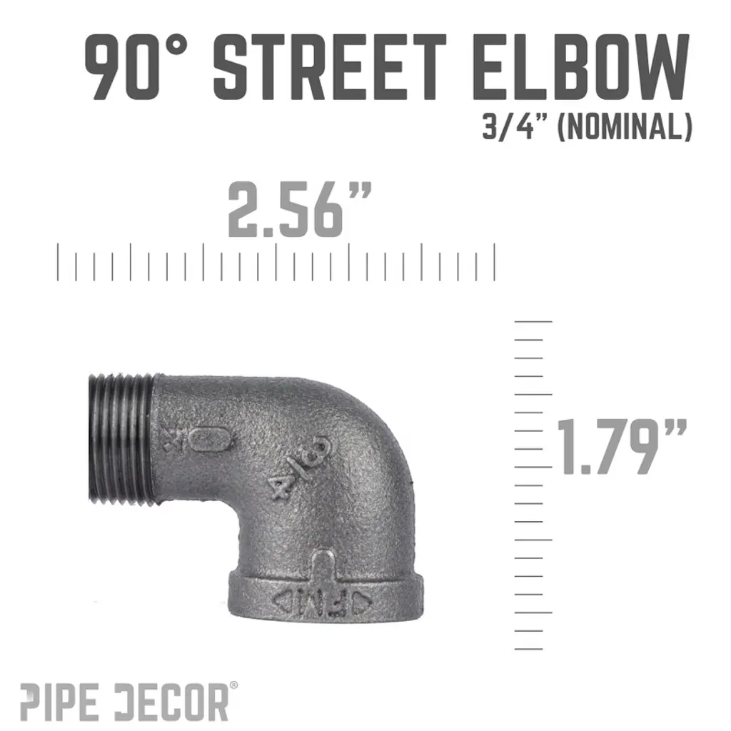 Add a modern touch to your DIY projects with 90-degree street elbows from PIPE DECOR. Perfect for building one-of-a-kind desks, coffee tables, or art pieces, these fittings combine functionality with style. Each fitting is made from durable, industrial-grade malleable iron, ensuring long-lasting strength and authenticity. You’ll recognize genuine PIPE DECOR parts the moment you hold them—beauty and beast, strength and style combined. These are real industrial fittings designed for your decorations and designs. Accept no substitutes. Extra pieces and accessories are available for custom projects and expansions, allowing you to plug and play as your creativity grows. Our iron fittings complement a wide variety of aesthetics, including steampunk lighting, industrial, factory, French country farmhouse, vintage, retro, reclamation, DIY customized, modern, and more. Each 90-degree street elbow features IPS threads for compatibility with other project materials such as lamp parts, valves, and additional PIPE DECOR components. We recommend cleaning and sealing each fitting before use. All pieces are fully compatible with any pipes, fittings, and PIPE DECOR furniture kits of the same diameter.