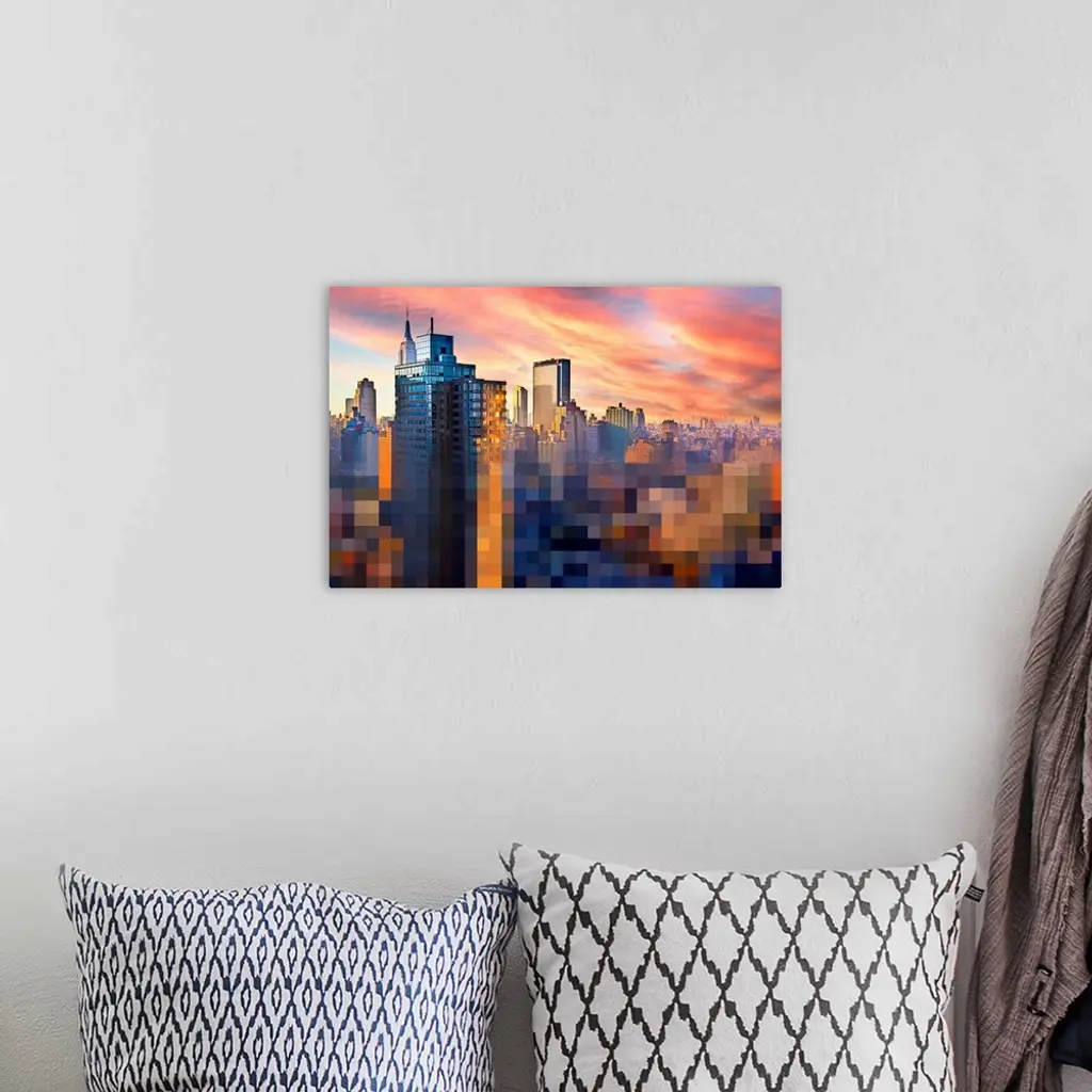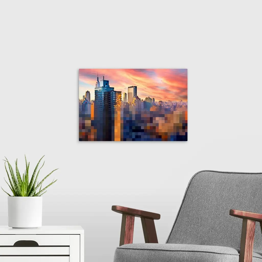 This new collection of Photographic Art created by Philippe Hugonnard highlights the beauty of American urban landscapes by reinterpreting them through a colorful dynamic prism and contemporary creativity. The vibrant colors of the sunset and the gradients of pixelated geometric shapes create a futuristic atmosphere that attracts attention and allows people to work their imaginations discovering the various artworks. The Pixelusa collection is a tribute to American architecture that offers a new and original look at these different urban landscapes. It invites reflection on our environment and on the creative possibilities of modern digital art.