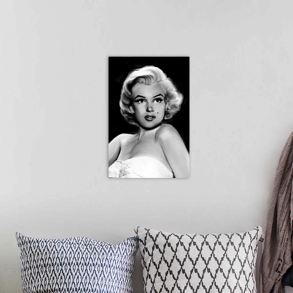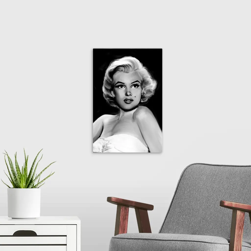 Digital art painting in black and white of Marilyn Monroe in Pixie Marilyn by Jerry Michaels.
