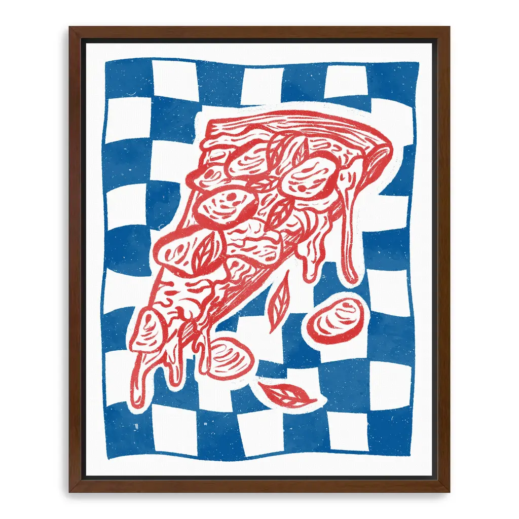 This eye-catching canvas art captures the joy of comfort food with a stylized pepperoni slice in vivid red, set against a classic blue-and-white checkered pattern. Ideal for foodies and fun-loving interiors, it brings instant warmth and personality to your wall. Our Gallery Wrap Canvas Prints are proudly assembled with high quality materials in California, USA. Each piece is printed on a thick, archival grade canvas using Giclee technology. It is then hand-stretched by our experienced artisans over solid wood bars, which will not warp over time. The final product is a piece personally crafted for you to confidently display on your wall. Care and Assembly: Ensure that the location of your piece has little to no exposure to heat, sunlight, and moisture. Wipe clean, only if needed. Each piece includes hanging hardware to hang on your wall vertically.