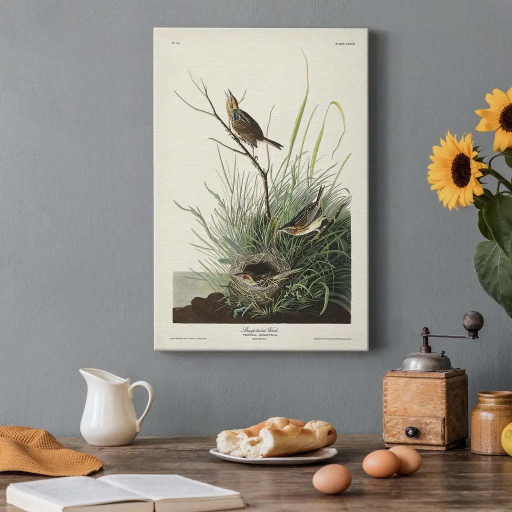 Pl. 149 Sharp-tailed Finch Premium Gallery Wrapped Canvas - Ready to Hang A premium hand stretched gallery wrapped canvas print created to last. Featuring a beveled a solid wood stretcher bar, each piece comes ready to hand 5 SIZES AVAILABLE 8''X12'' - Overall Size 16'X20'' - Overall Size 24''x32'' - Overall Size 30''x40'' - Overall Size 36''x48'' - Overall Size Each piece is made to order. Built to Last Each piece comes ready to hang Solid wood stretcher Fade and Water resistant Made domestically
