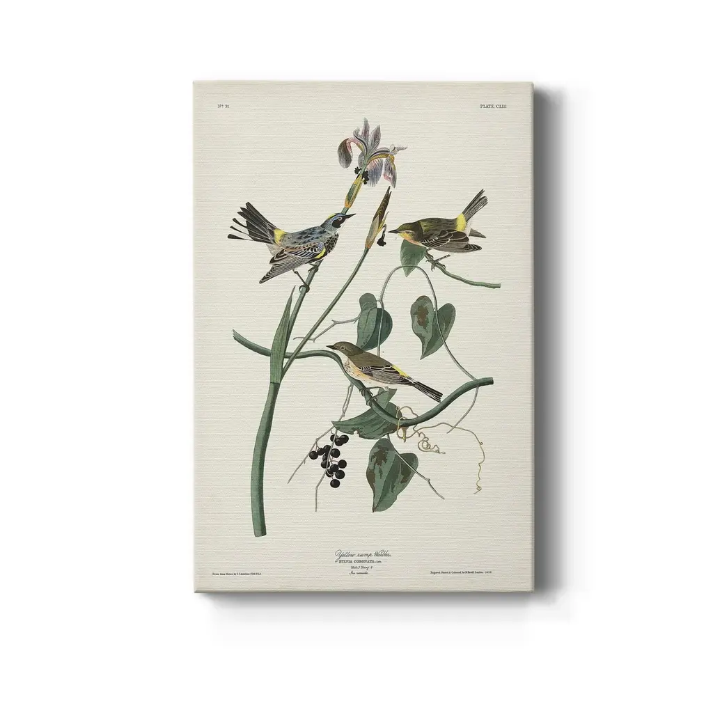 Pl. 153 Yellow-rump Warbler Premium Gallery Wrapped Canvas - Ready to Hang A premium hand stretched gallery wrapped canvas print created to last. Featuring a beveled a solid wood stretcher bar, each piece comes ready to hand 5 SIZES AVAILABLE 8''X12'' - Overall Size 16'X20'' - Overall Size 24''x32'' - Overall Size 30''x40'' - Overall Size 36''x48'' - Overall Size Each piece is made to order. Built to Last Each piece comes ready to hang Solid wood stretcher Fade and Water resistant Made domestically