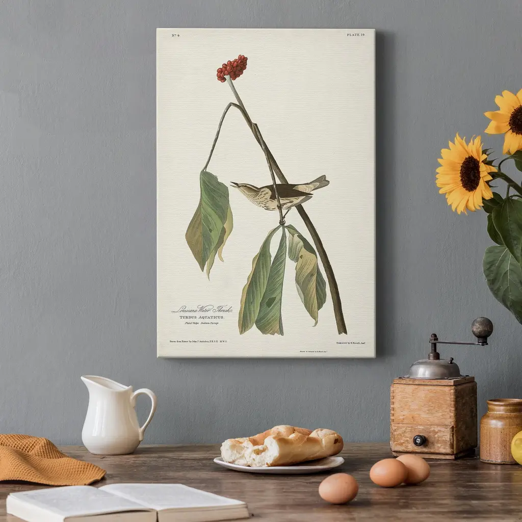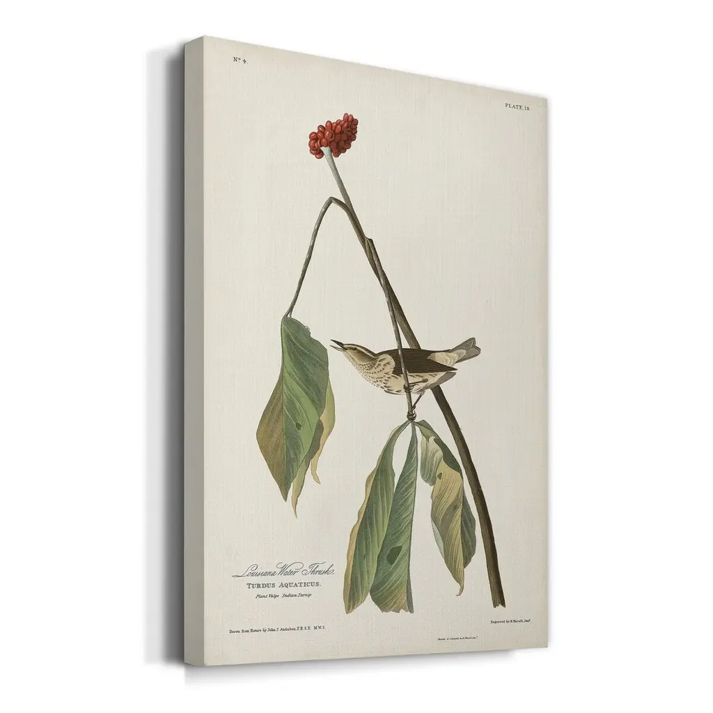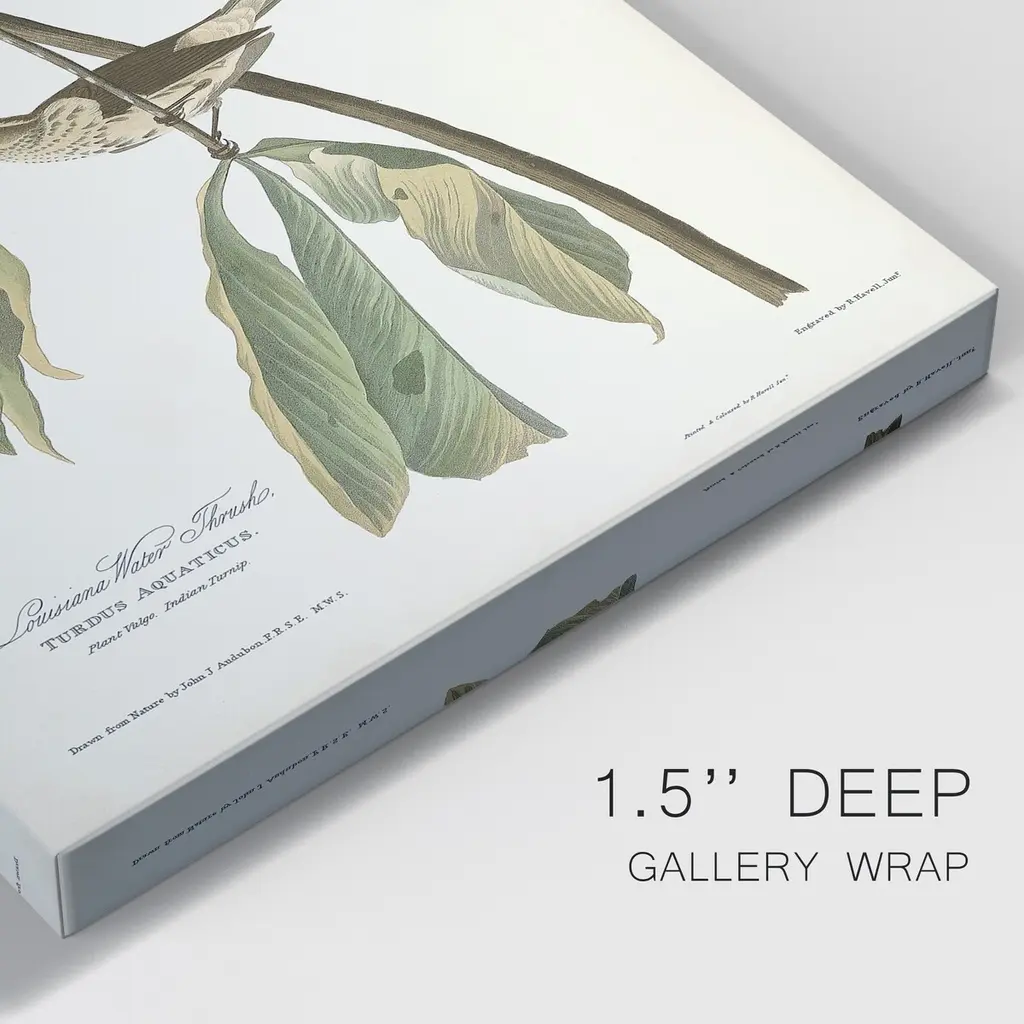 Pl. 19 Louisiana Water Thrush Premium Gallery Wrapped Canvas - Ready to Hang A premium hand stretched gallery wrapped canvas print created to last. Featuring a beveled a solid wood stretcher bar, each piece comes ready to hand 5 SIZES AVAILABLE 8''X12'' - Overall Size 16'X20'' - Overall Size 24''x32'' - Overall Size 30''x40'' - Overall Size 36''x48'' - Overall Size Each piece is made to order. Built to Last Each piece comes ready to hang Solid wood stretcher Fade and Water resistant Made domestically