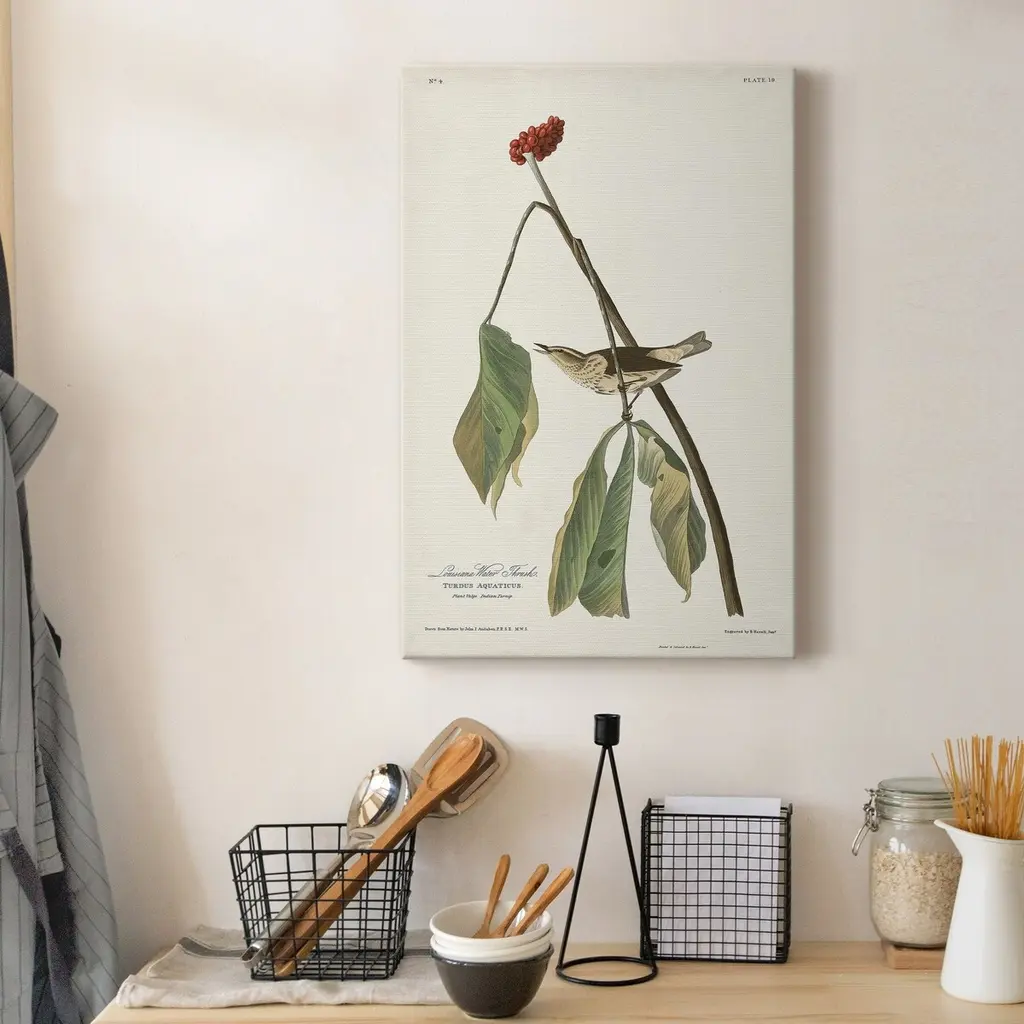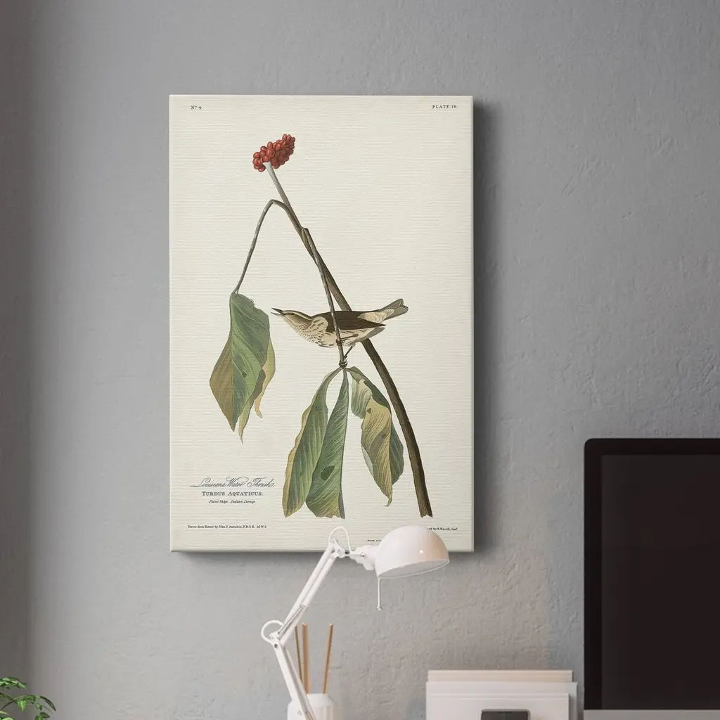 Pl. 19 Louisiana Water Thrush Premium Gallery Wrapped Canvas - Ready to Hang A premium hand stretched gallery wrapped canvas print created to last. Featuring a beveled a solid wood stretcher bar, each piece comes ready to hand 5 SIZES AVAILABLE 8''X12'' - Overall Size 16'X20'' - Overall Size 24''x32'' - Overall Size 30''x40'' - Overall Size 36''x48'' - Overall Size Each piece is made to order. Built to Last Each piece comes ready to hang Solid wood stretcher Fade and Water resistant Made domestically