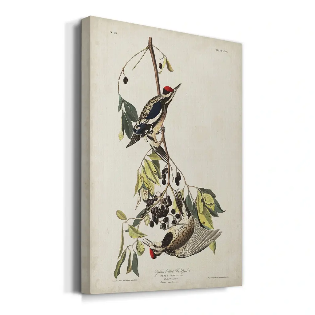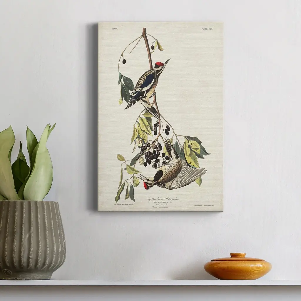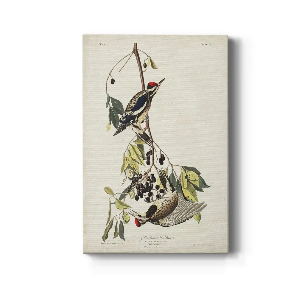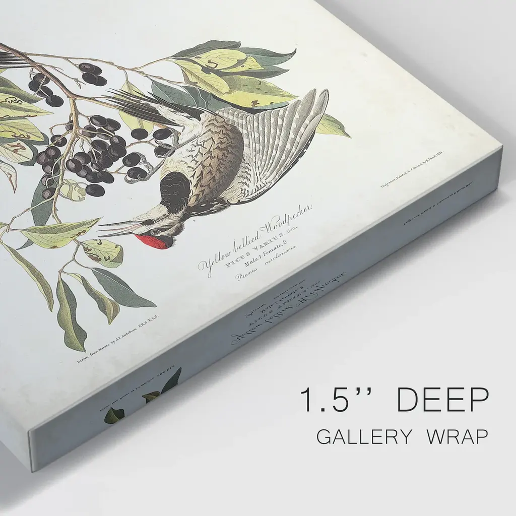 Pl. 190 Yellow-bellied Woodpecker Premium Gallery Wrapped Canvas - Ready to Hang A premium hand stretched gallery wrapped canvas print created to last. Featuring a beveled a solid wood stretcher bar, each piece comes ready to hand 5 SIZES AVAILABLE 8''X12'' - Overall Size 16'X20'' - Overall Size 24''x32'' - Overall Size 30''x40'' - Overall Size 36''x48'' - Overall Size Each piece is made to order. Built to Last Each piece comes ready to hang Solid wood stretcher Fade and Water resistant Made domestically