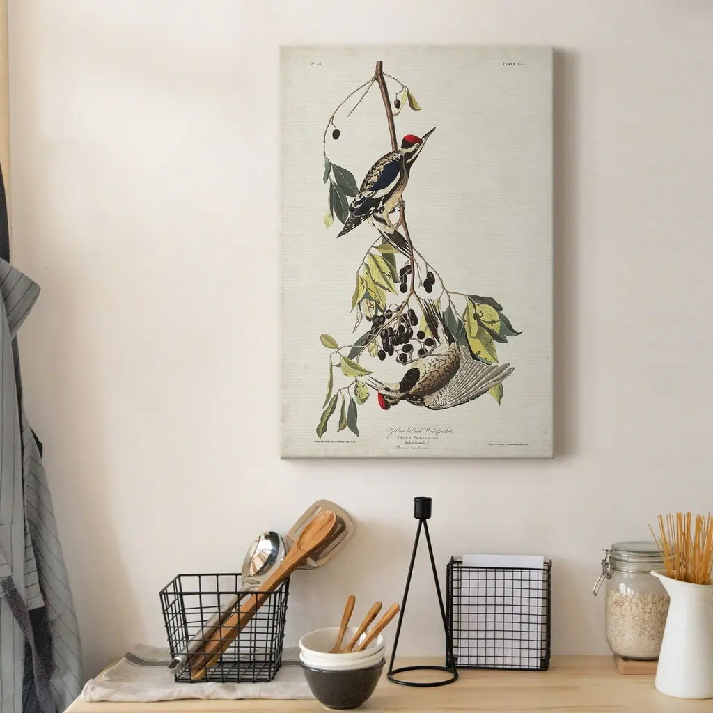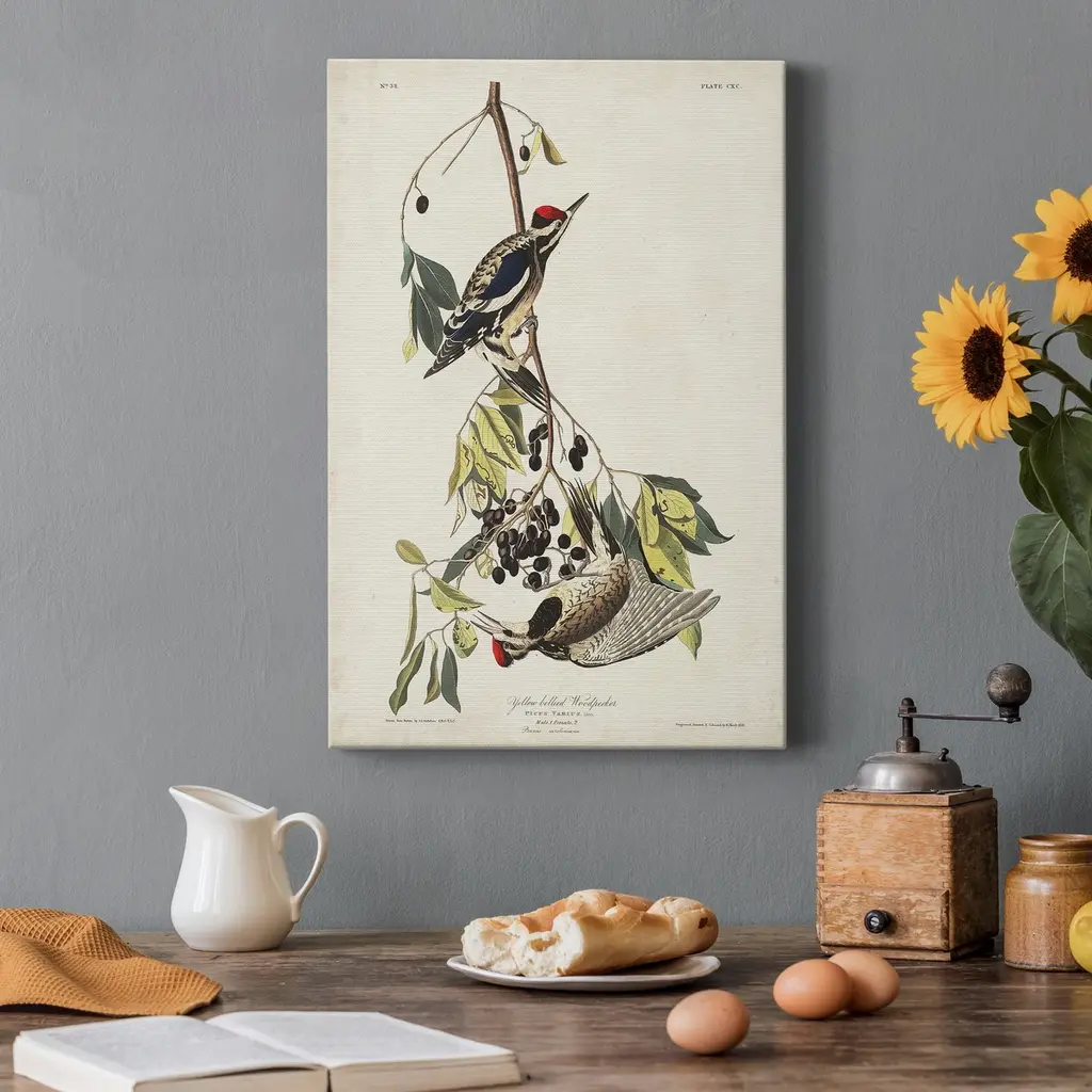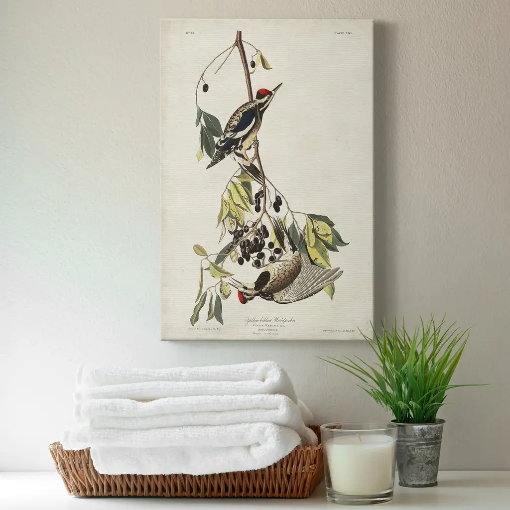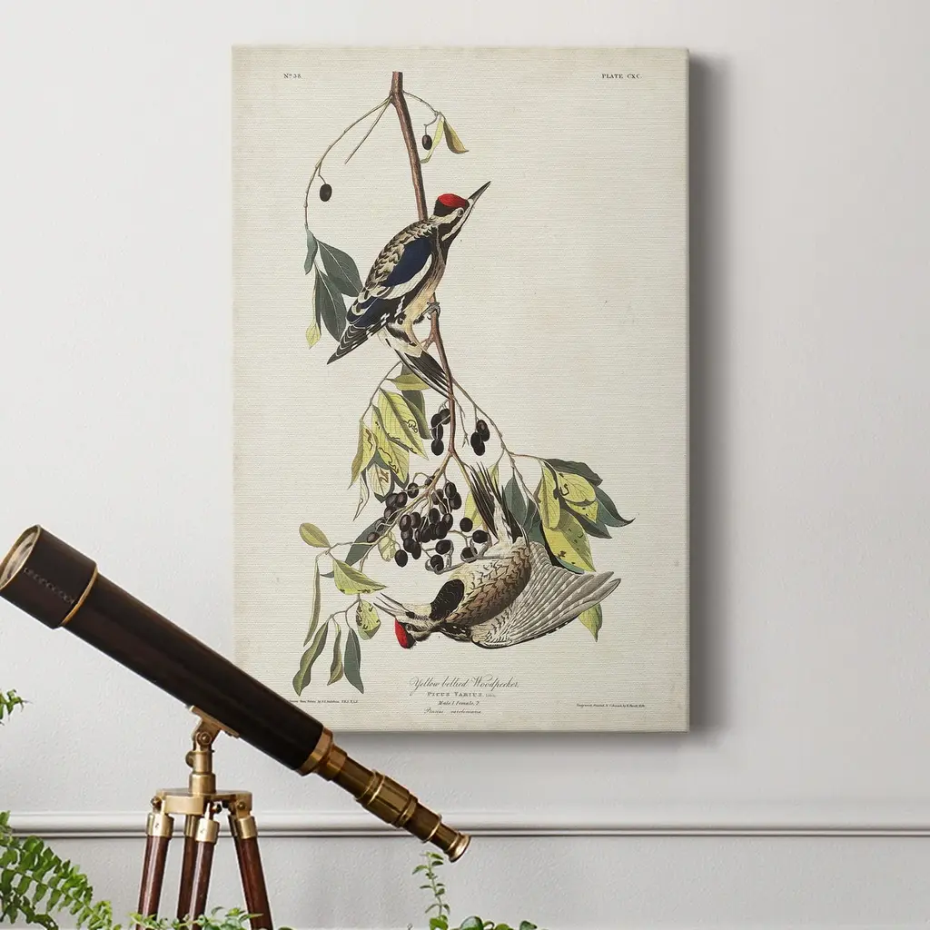 Pl. 190 Yellow-bellied Woodpecker Premium Gallery Wrapped Canvas - Ready to Hang A premium hand stretched gallery wrapped canvas print created to last. Featuring a beveled a solid wood stretcher bar, each piece comes ready to hand 5 SIZES AVAILABLE 8''X12'' - Overall Size 16'X20'' - Overall Size 24''x32'' - Overall Size 30''x40'' - Overall Size 36''x48'' - Overall Size Each piece is made to order. Built to Last Each piece comes ready to hang Solid wood stretcher Fade and Water resistant Made domestically