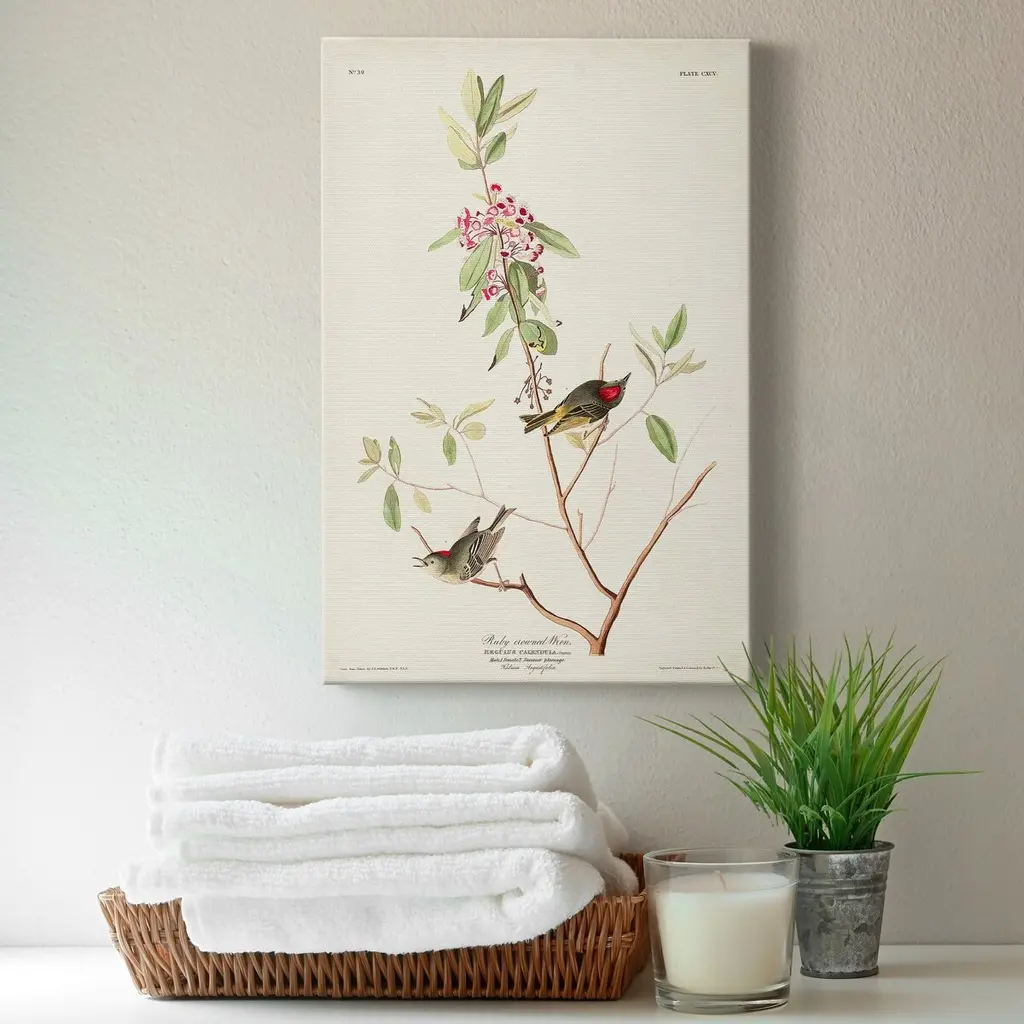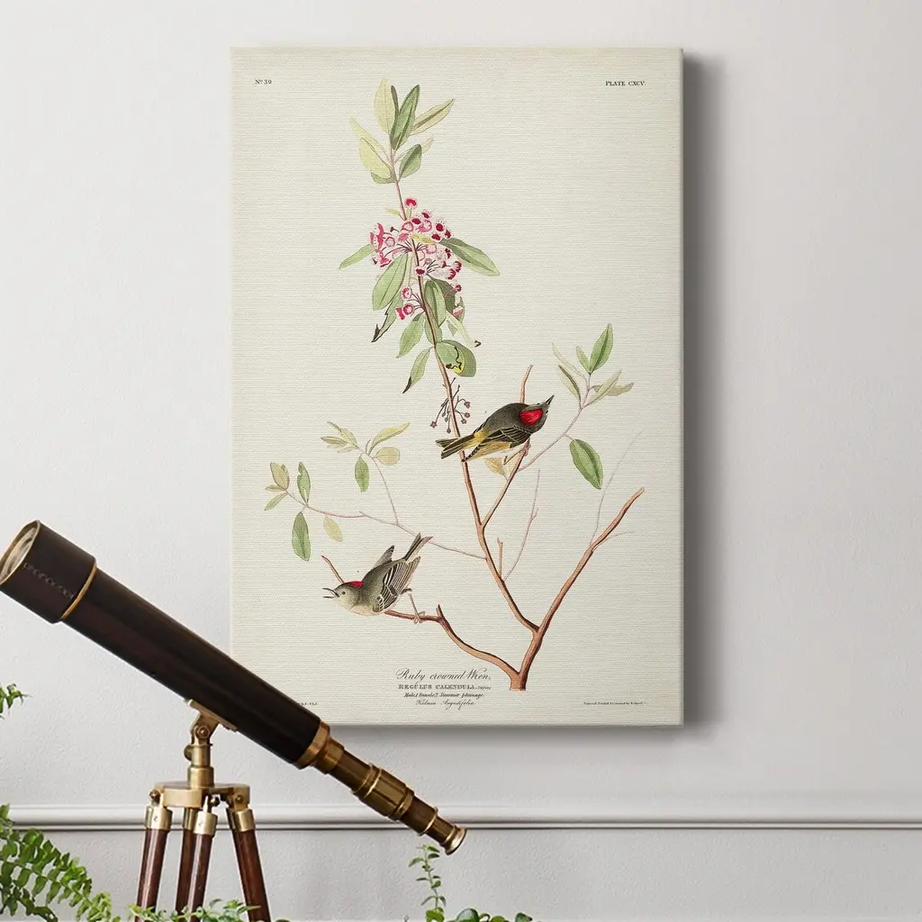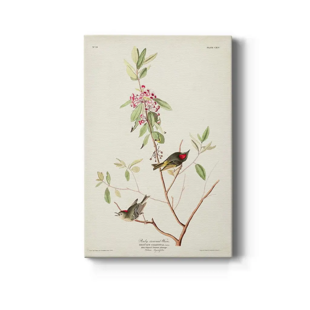 Pl. 195 Ruby-crowned Wren Premium Gallery Wrapped Canvas - Ready to Hang A premium hand stretched gallery wrapped canvas print created to last. Featuring a beveled a solid wood stretcher bar, each piece comes ready to hand 5 SIZES AVAILABLE 8''X12'' - Overall Size 16'X20'' - Overall Size 24''x32'' - Overall Size 30''x40'' - Overall Size 36''x48'' - Overall Size Each piece is made to order. Built to Last Each piece comes ready to hang Solid wood stretcher Fade and Water resistant Made domestically